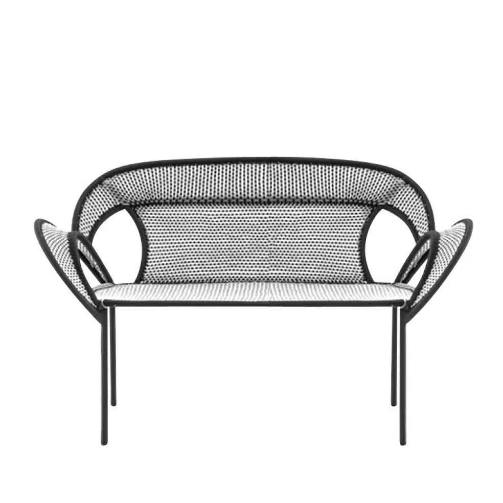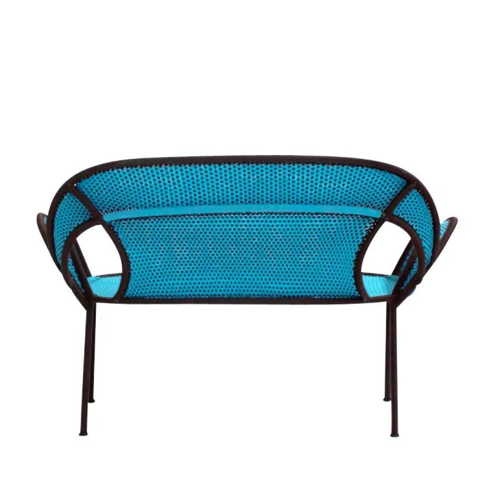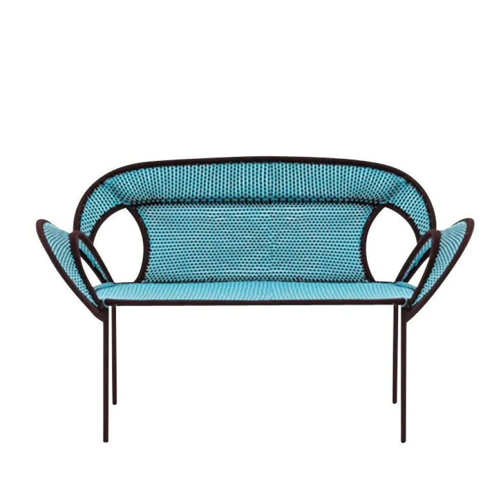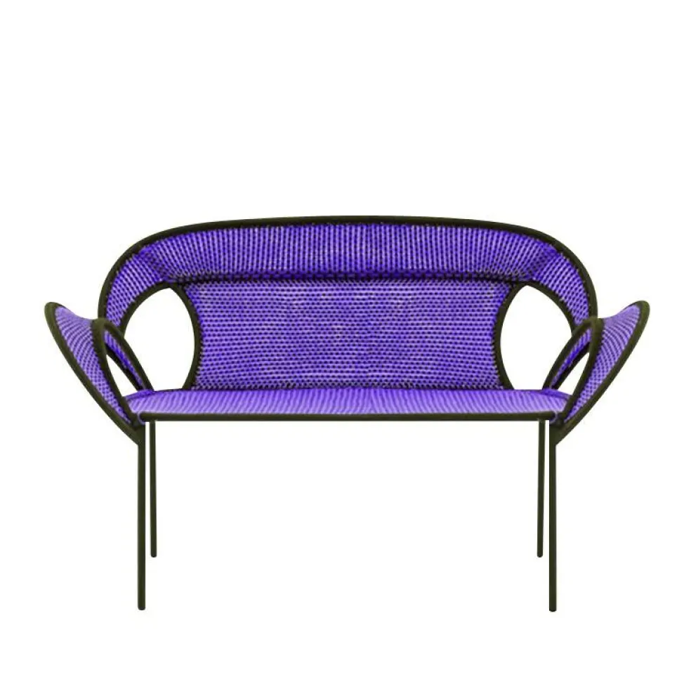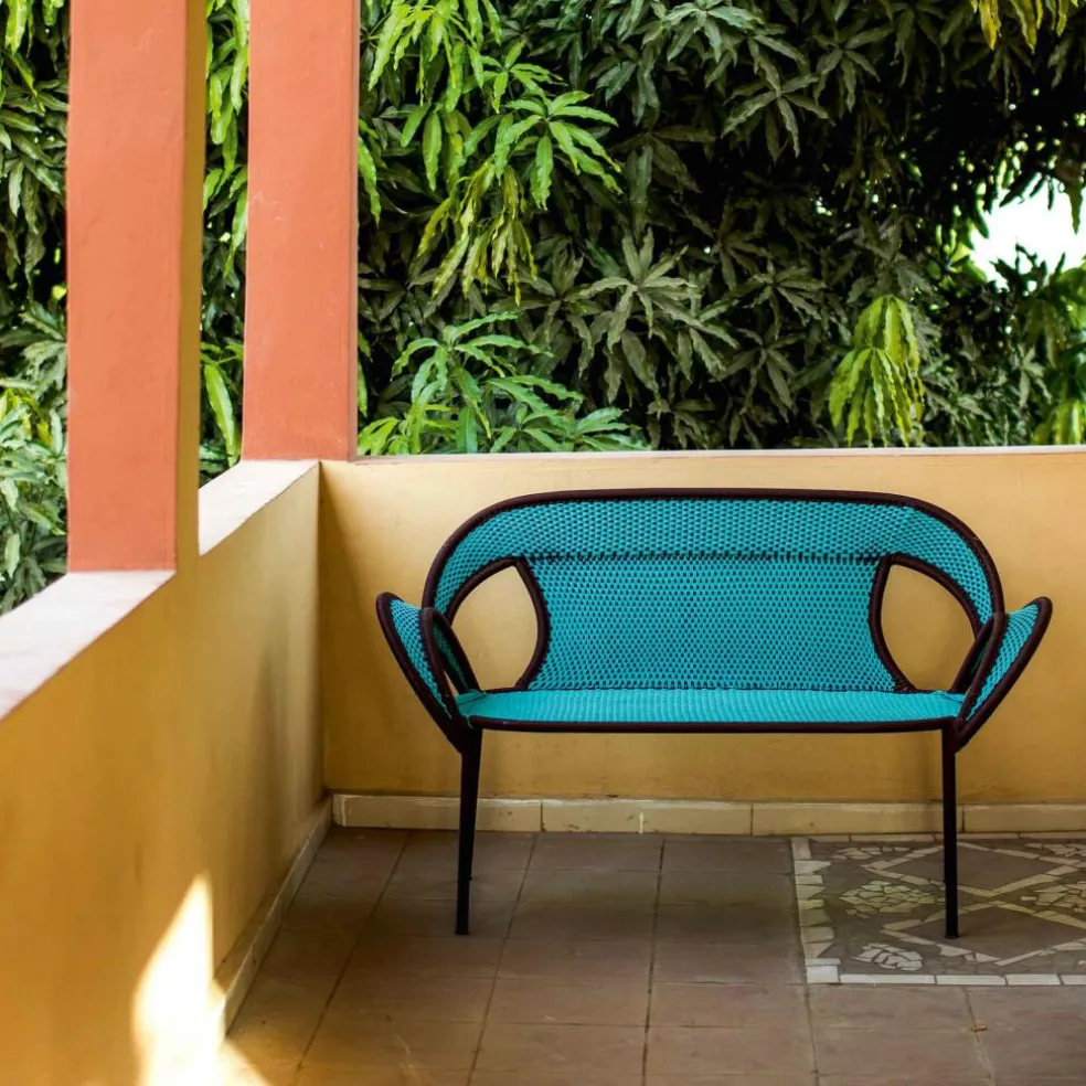 Die Maße von 143 cm x 88 cm x 72 cm lassen ausreichend Platz für zwei, das weiche Flechtwerk vermittelt besonders viel Komfort. Die vier Farbvarianten spiegeln die afrikanischen Einflüsse wider: türkis/oxyd, schwarz/gelb, schwarz/weiß und violett/oxyd. Und sie ermutigen zu kreativen Stilbrüchen und neuen Ideen für Ihr Zuhause oder Ihren Arbeitsplatz. Ebenso eignet sich das Banjooli 2-Sitzer Sofa von Moroso Outdoor für den Außenbereich.