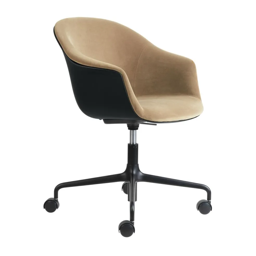 Mit dem Bat Meeting Stuhl Frontpolsterung bringt Gubi ein Designobjekt in moderne Arbeitswelten, das Komfort und Charakter gleichermaßen verkörpert. Entworfen vom renommierten Design-Duo GamFratesi, greift der Stuhl die Formensprache einer Fledermaus auf.