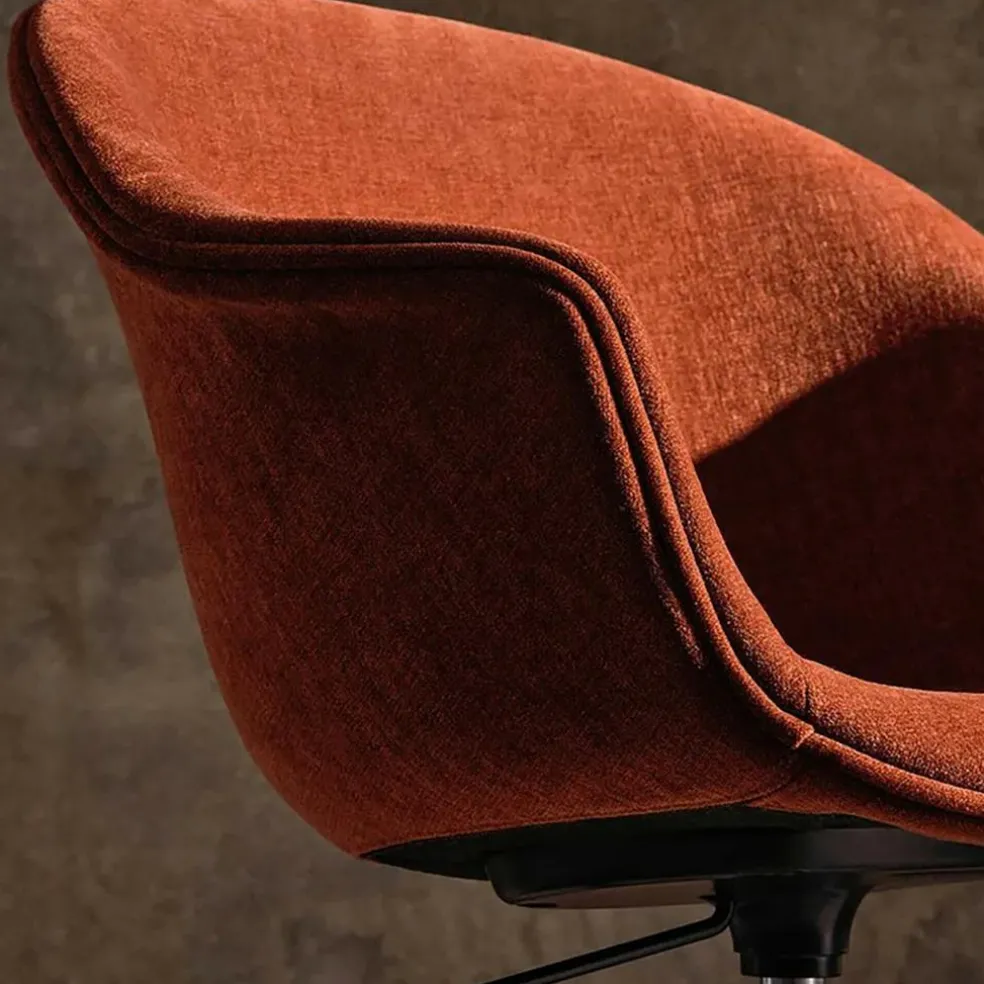 Vollständig gepolstert mit dem edlen Stoff Belsuede Special von Dedar in einem rostigen Rotton, verleiht der Bat Meeting Stuhl Vollpolsterung jedem Raum einen warmen, zugleich selbstbewussten Akzent. Der Bezugsstoff aus 100 % Trevira CS ist nicht nur flammhemmend, sondern auch besonders strapazierfähig – ideal für professionelle Umgebungen mit gehobenem Anspruch. Darunter sorgt eine durchgängige Schaumstoffpolsterung für sanftes Einsinken und lang anhaltenden Komfort – ob bei konzentriertem Arbeiten oder im Austausch mit Kolleginnen und Kollegen. Das Untergestell mit matt schwarzem 4-Stern-Fußkreuz aus Kunststoff ist drehbar und mit Rollen ausgestattet, was eine hohe Beweglichkeit garantiert. Dank der stufenlosen Höhenverstellung von 40 cm bis 51,5 cm passt sich der Stuhl flexibel an unterschiedliche Sitzpositionen und Tischhöhen an – ein klarer Vorteil im dynamischen Office-Alltag oder im Homeoffice. Mit seinen Maßen von 61 cm Breite, 57 cm Tiefe und einer Gesamthöhe von bis zu 89,5 cm bringt der Bat Meeting Stuhl Vollpolsterung eine harmonische Präsenz mit. Die Rückenlehne misst 38 cm in der Höhe, während die Armlehnen mit 68 cm angenehm gestützt wirken. Der Abstand zwischen den Armlehnen beträgt 48 cm, das Gestell misst 50 x 50 cm bei einem Durchmesser des Gestells von 1,8 bis 4,5 cm. Trotz seiner großzügigen Erscheinung bleibt der Stuhl mit einem Gewicht von 11,9 kg leicht genug, um ihn flexibel im Raum zu bewegen.