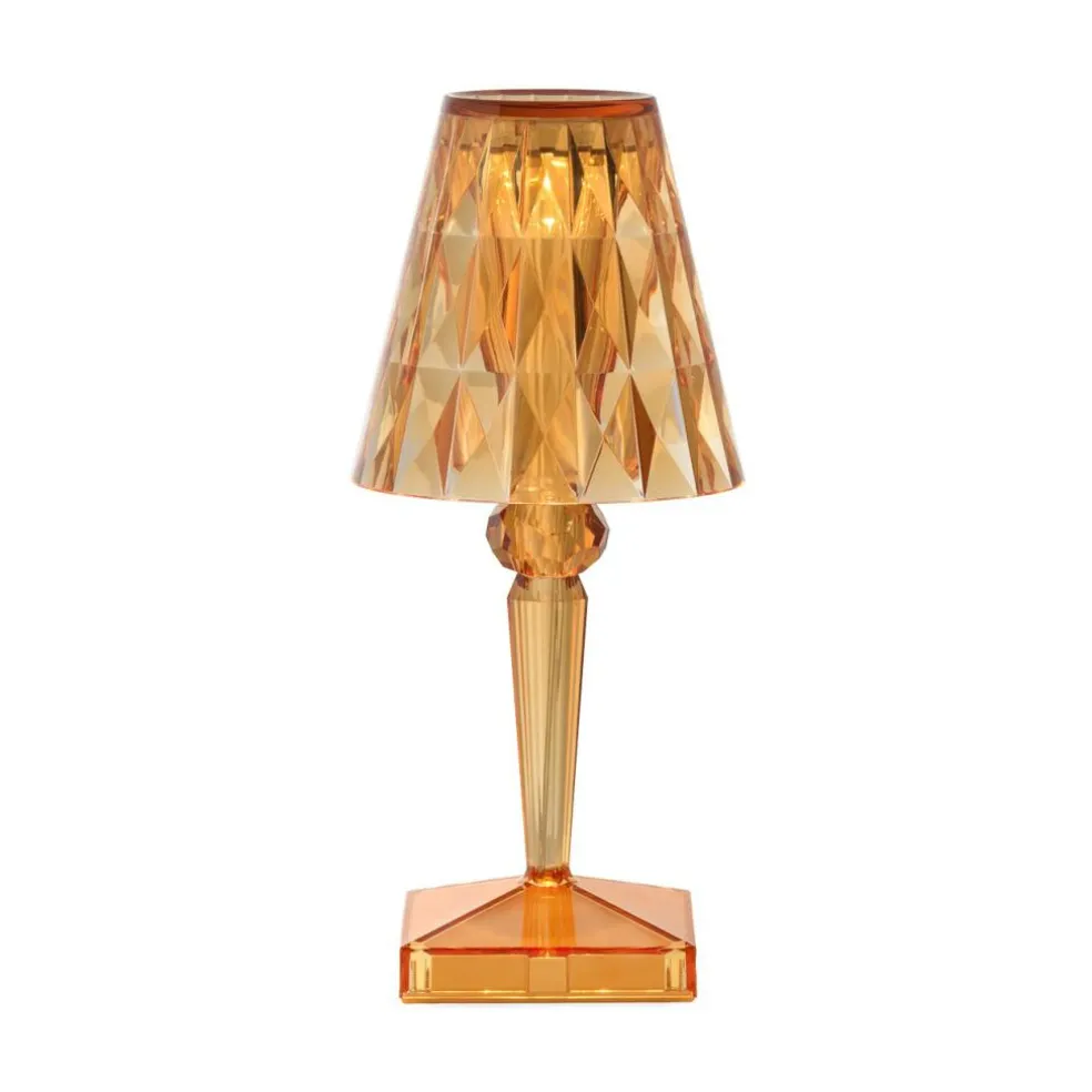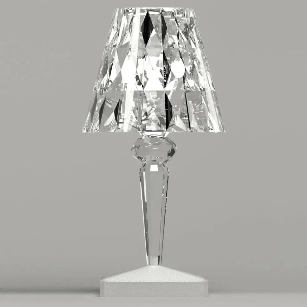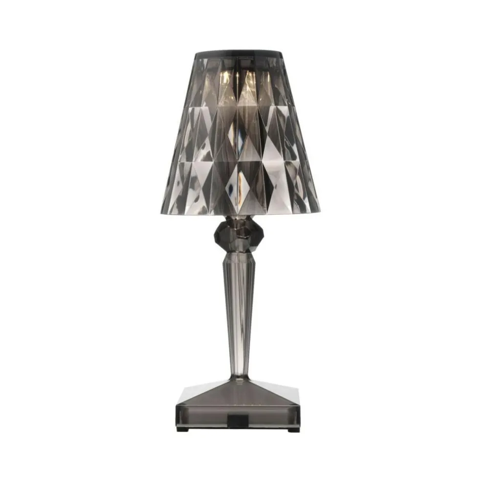 Die Battery LED Outdoor Tischleuchte mit Akku besteht aus dem transparenten Kunststoff PMMA. Mit nur 0,4 kg ist sie federleicht. Somit lässt sie sich flexibel am Rande eines Gartenwegs, auf dem Tisch, neben der Terrasse oder am Balkon platzieren. Aufgeladen wird die Leuchte mit einem USB-Kabel, das im Lieferumfang enthalten ist. Nach rund 5 h ist die Battery LED Outdoor Tischleuchte mit Akku vollständig aufgeladen. Dann spendet sie für 14.5 h Licht. Der Anschluss befindet sich im Leuchtenfuß. Auf der gegenüberliegenden Seite ist der Touch-Schalter zu finden. Laviani hat sich bei der Battery LED Outdoor Tischleuchte mit Akku für den Stil einer klassischen Tischleuchte entschieden: Auf einem quadratischen Plateau erhebt sich ein nach oben hin breiter werdender Stab. Der Leuchtenschirm ist als Kegelstumpf gefertigt.