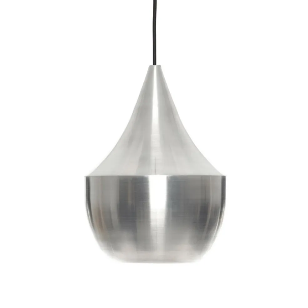 Statt sich in den Hintergrund zu fügen, setzt die Beat Fat Unbeaten LED Pendelleuchte ein bewusstes Statement: Jeder Schirm wird von Kunsthandwerkern in Nordindien aus gebürstetem Aluminium gefertigt – ein Prozess, der nicht nur die Form, sondern auch die Seele der Leuchte prägt. Die charakteristische, bauchige Silhouette steht dabei in einem spannungsvollen Kontrast zur klaren Linie moderner Innenarchitektur – ein Designobjekt, das Raumwirkung mit Funktionalität vereint. Ausgestattet mit einem energieeffizienten, dimmbaren und wartungsfreundlichen LED-Modul sorgt die Beat Fat Unbeaten LED Pendelleuchte nicht nur für stimmungsvolle Beleuchtung, sondern auch für einen bewussten Umgang mit Energie. Die 250 cm lange, schwarze Textilkabel-Aufhängung bietet Flexibilität bei der Platzierung, während der schwarze Deckenbaldachin das Gesamtbild harmonisch abrundet. Mit einer Höhe von 30 cm und einem Durchmesser von 24 cm eignet sich die Leuchte ideal für kleinere Esstische, als Akzent über Sideboards oder in Kombination mit anderen Beat-Modellen von Tom Dixon für ein dynamisches Lichtarrangement. Jede Leuchte ist ein Unikat – leichte Abweichungen in der Oberfläche unterstreichen ihre handgefertigte Herkunft. Zur Pflege genügt ein weiches, trockenes Tuch – auf Wasser oder scharfe Reinigungsmittel sollte verzichtet werden, um die Oberfläche zu schützen.
