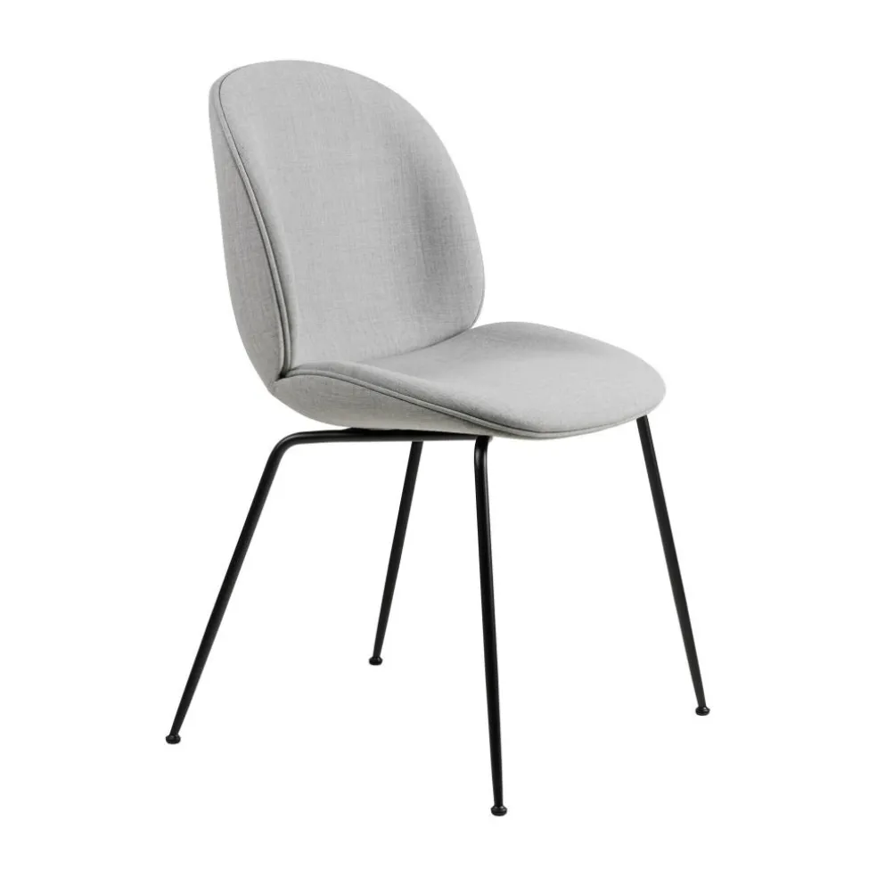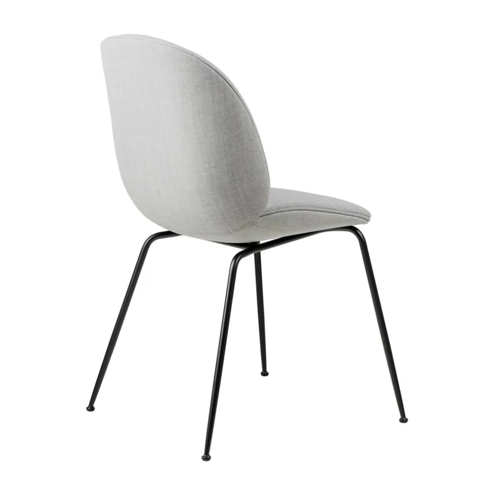 Der Beetle Schalenstuhl Vollpolsterung Gestell konisch wurde von GamFratesi für die Marke Gubi entworfen. Die Idee kam dem Designerduo, als sie an Käfer dachten. Daher rührt auch der Name. Die Sitzschale ist einem Panzer der Insekten nachempfunden und das filigrane Gestell erinnert an die Beine der Insekten.