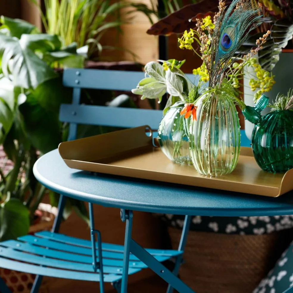 Mit seinen markanten Latten sowie dem zierlichen Scherengestell ist der Bistro Metall Klappstuhl ein ebenso stilvolles wie funktionales Sitzmöbel, das sich dank seines raffinierten Klappmechanismus platzsparend verstauen lässt. Hergestellt aus hochwertigem Flachstahl und mit schlanken Stahltraversen versehen, garantiert die Konstruktion eine hohe Stabilität. Die leicht gebogenen Stahllatten von Sitzfläche und Rückenlehne versprechen einen bequemen Sitz. Ihre Oberfläche ist wahlweise texturiert oder glatt und mit einem UV-beständigen Anstrich versehen. Zum sicheren Auf- und Zusammenklappen verfügt das Möbel über Plastikclips. Der Bistro Metall Klappstuhl eignet sich für den Innenbereich und kann auch unter freiem Himmel stehen. Er ist ein praktisches Sitzmöbel für unerwartete Gäste, passt perfekt in ein Ensemble auf der Terrasse und schafft als Solitär einen verträumten Blickfang in einer romantischen Gartenecke.