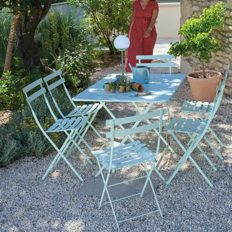 Der Bistro Metall Klappstuhl wurde für die Marke Fermob entworfen. Das Design geht auf ein Konzept aus dem Jahr 1889 zurück, das für die Ausstattung der Pariser Bistros entwickelt wurde. Heute ist der Designklassiker auch im privaten Zuhause ein stylisher Hingucker.