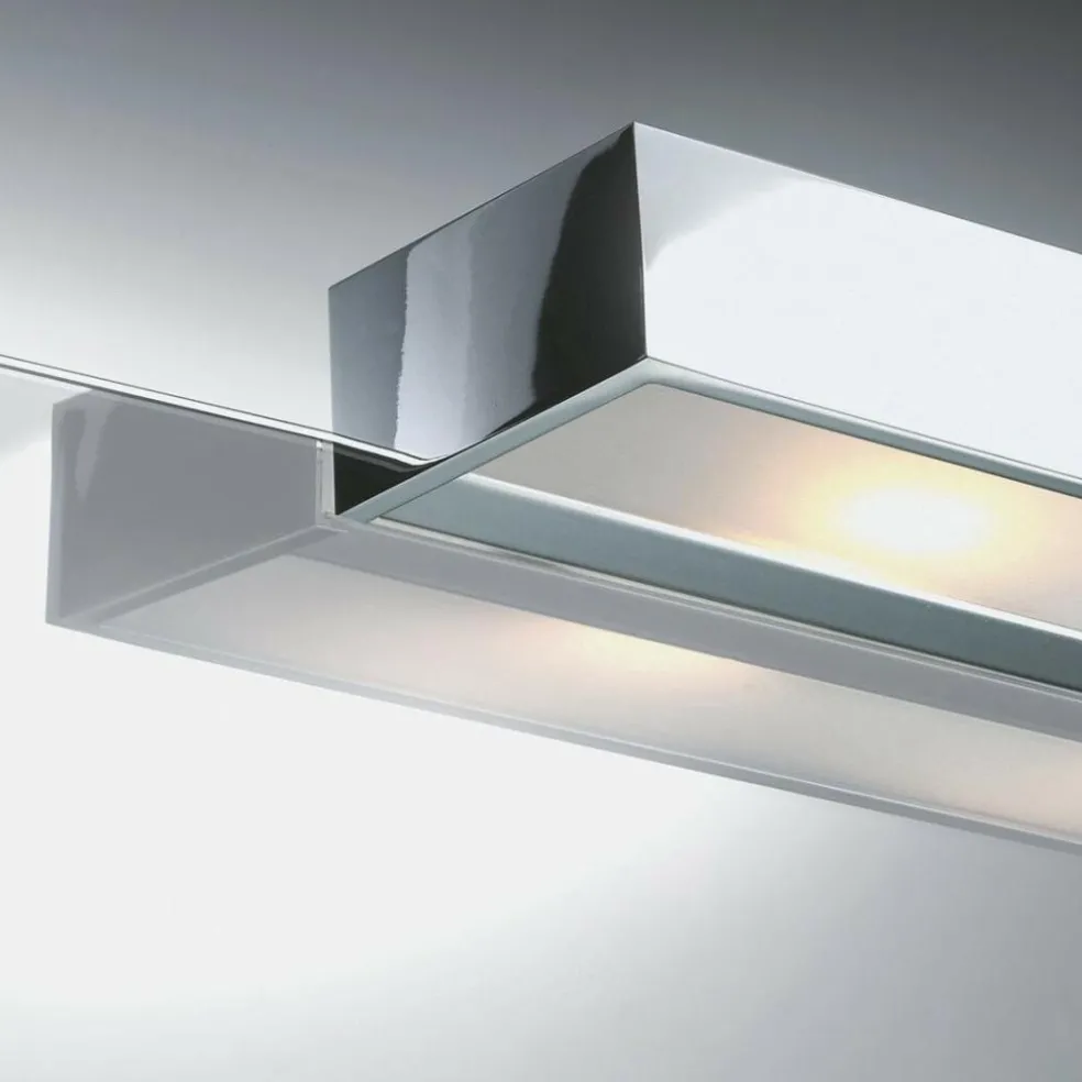Die geradlinige Box 1-60 Spiegelaufsteckleuchte von Decor Walther ist auch in den Varianten Box 1-15 sowie Box 1-25 für den Spiegel in Ihrem Badezimmer erhältlich.