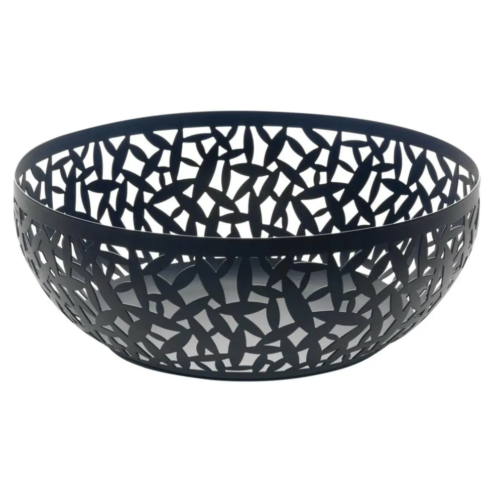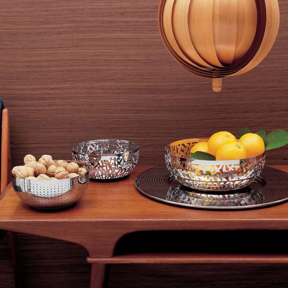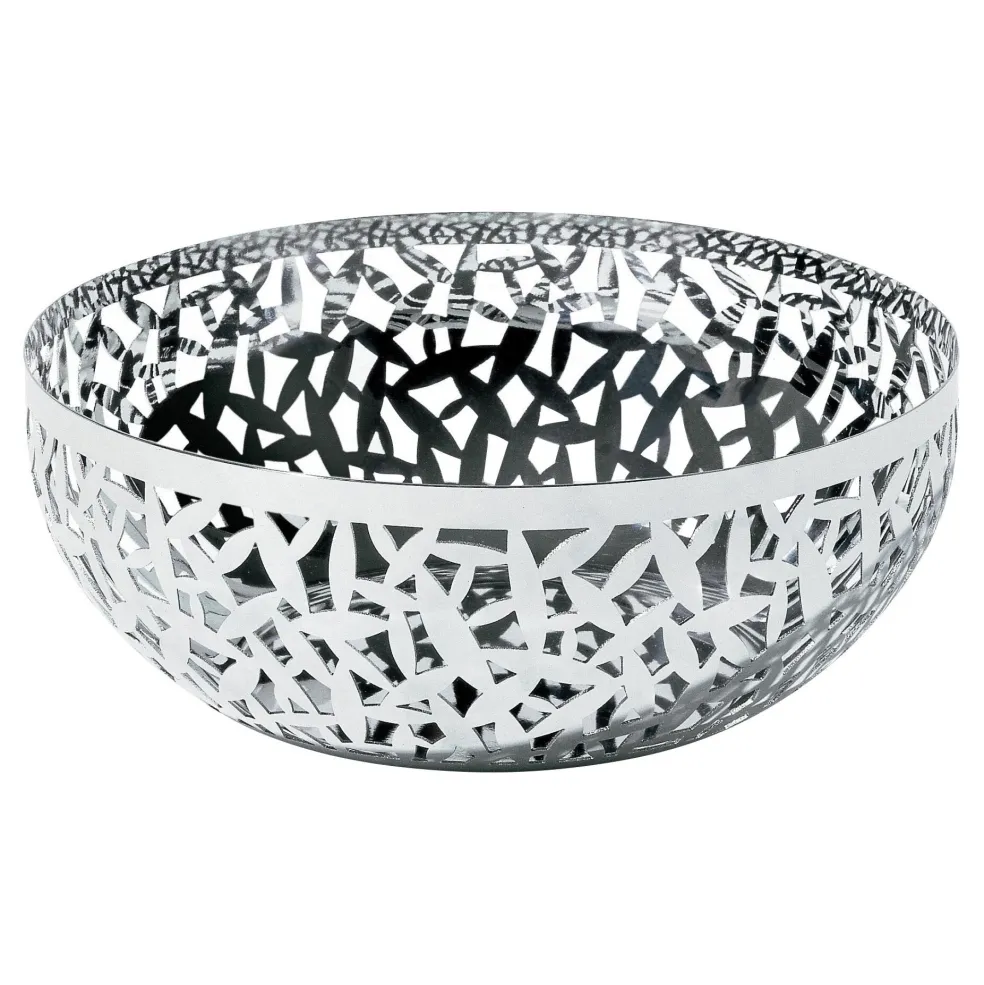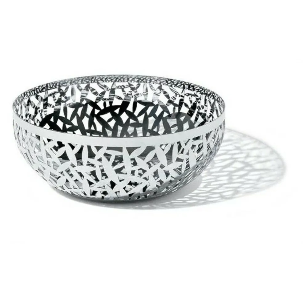 Die Cactus! Obstschale Ø29cm wurde von Marta Sansoni für die Marke Alessi entworfen. Die italienische Designerin gestaltete damit im Jahr 2002 eine Schale mit einem lasergeschnittenen Muster im modernen Look. Dieses wirkt auf den ersten Blick abstrakt, erinnert auf den zweiten Blick jedoch namensgebend an die Blätter von Kakteen.