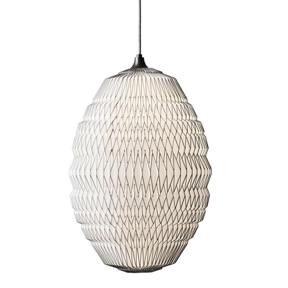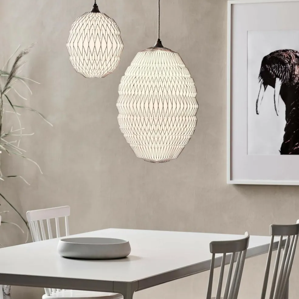 Wie ein Bienenkorb voller glänzender Waben hängt die Caleo 2 Pendelleuchte von der Decke. Das filigrane Design wirkt durch die verwendeten Materialien Kunststoff und Metall leicht und nahezu durchscheinend. Mit einer Höhe von 56 cm und einem Durchmesser von 36 cm bildet die Leuchte eine wohlproportionierte Skulptur, die sowohl als Solitär wie auch in Verbindung mit anderen Leuchten der Serie ihre Wirkung entfaltet.