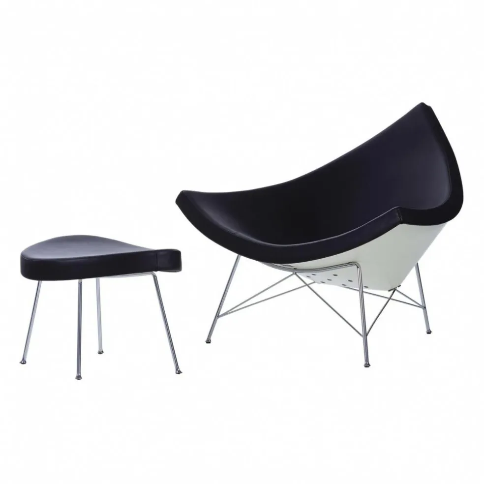 Der Coconut Chair Nelson Sessel wurde von George Nelson für die Marke Vitra entworfen. Sein voluminöses Design ist inspiriert von der Form einer aufgeschnittenen Kokosnuss. Doch erscheint der ikonische Entwurf aus dem amerikanischen Mid-Century auch heute höchst modern.