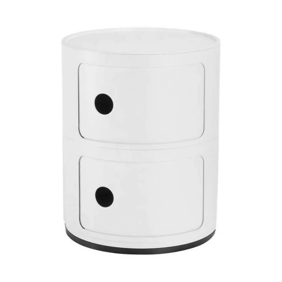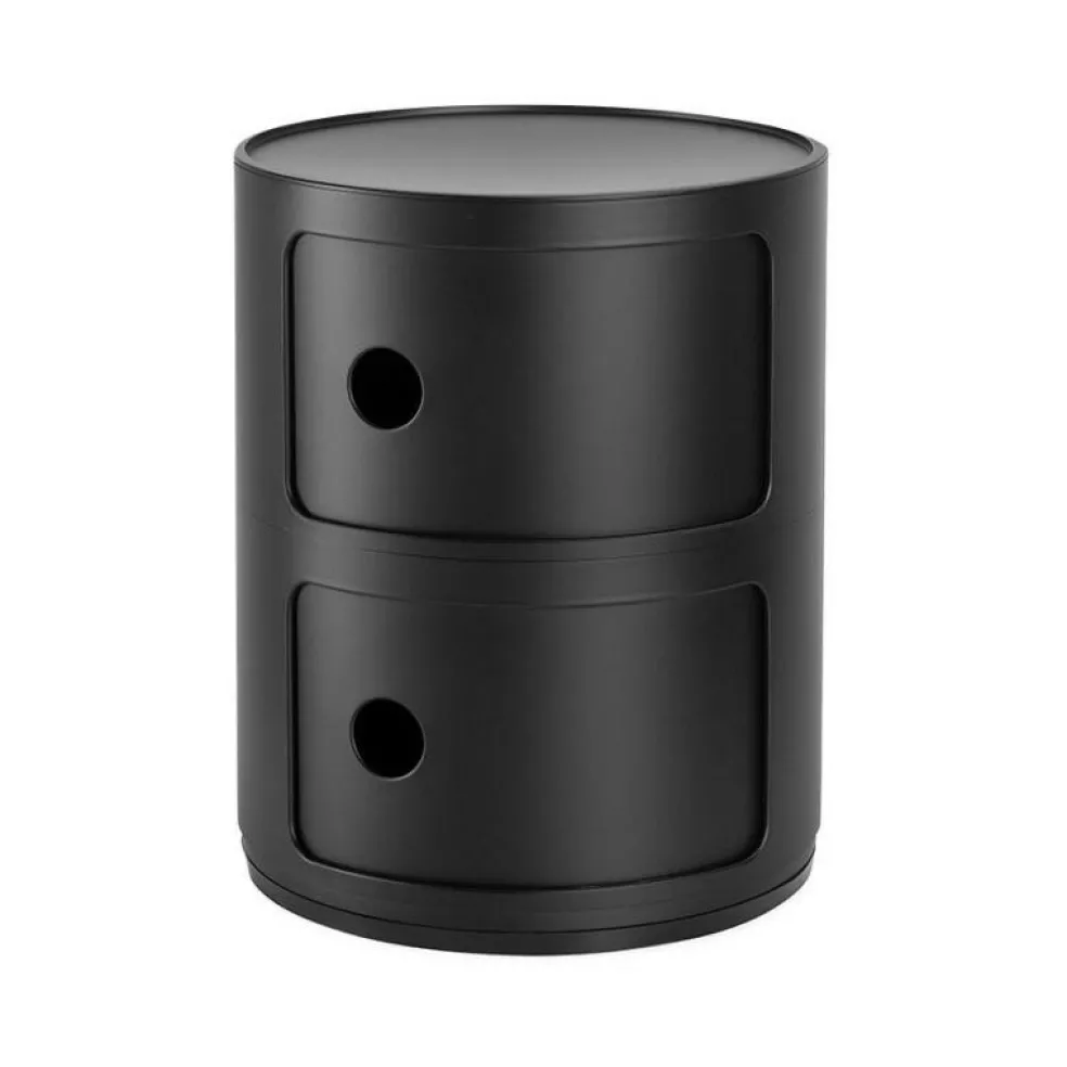 Optisch unterscheidet sich der Componibili 2 Container matt dank der runden Form stark von klassischen eckigen Containermodellen. Die runden Griffaussparungen wirken elegant und ermöglichen ein einfaches Herausziehen und Hineinschieben der Schubladen. Den Componibili 2 Container matt gibt es in verschiedenen Farben. Mit nur etwa 2kg ist der Container sehr leicht und kann schnell von A nach B verschoben werden. Die Höhe beträgt bei diesem Modell 40cm und der Durchmesser 32cm. Componibili 2 Container matt sind nicht nur innen einsetzbar, sondern auch für den Außenbereich geeignet.