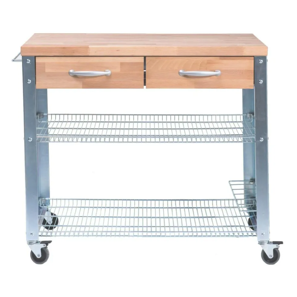 Der Küchenwagen Cook versüßt Ihnen dank Style und Funktionalität das Kochen mit Familie und Freunden. Der rollbare Küchenwagen von Jan Kurtz besteht aus einem verzinkten Metallgestell, zwei eingezogenen Metallregalen sowie aus einer massiven Arbeitsplatte und Schubladen aus Buchenholz. Cook wird von vier Rollen getragen, die bei Bedarf auch festgestellt werden können. Ganz bequem können Sie in diesem schönen Küchenwagen von Jan Kurtz Töpfe, Pfannen, Besteck und sonstige Küchenaccessoires verstauen. Gleichzeitig versorgt Cook Ihre Küche mit zusätzlicher Arbeitsfläche. Ebenso können Sie den Küchenwagen dank seiner Rollen neben Ihrem Esstisch platzieren und so auch dort mehr Platz gewinnen. Cook gibt es in zwei verschiedenen Größen, bitte beachten Sie hierzu unsere „Produktvarianten“.
