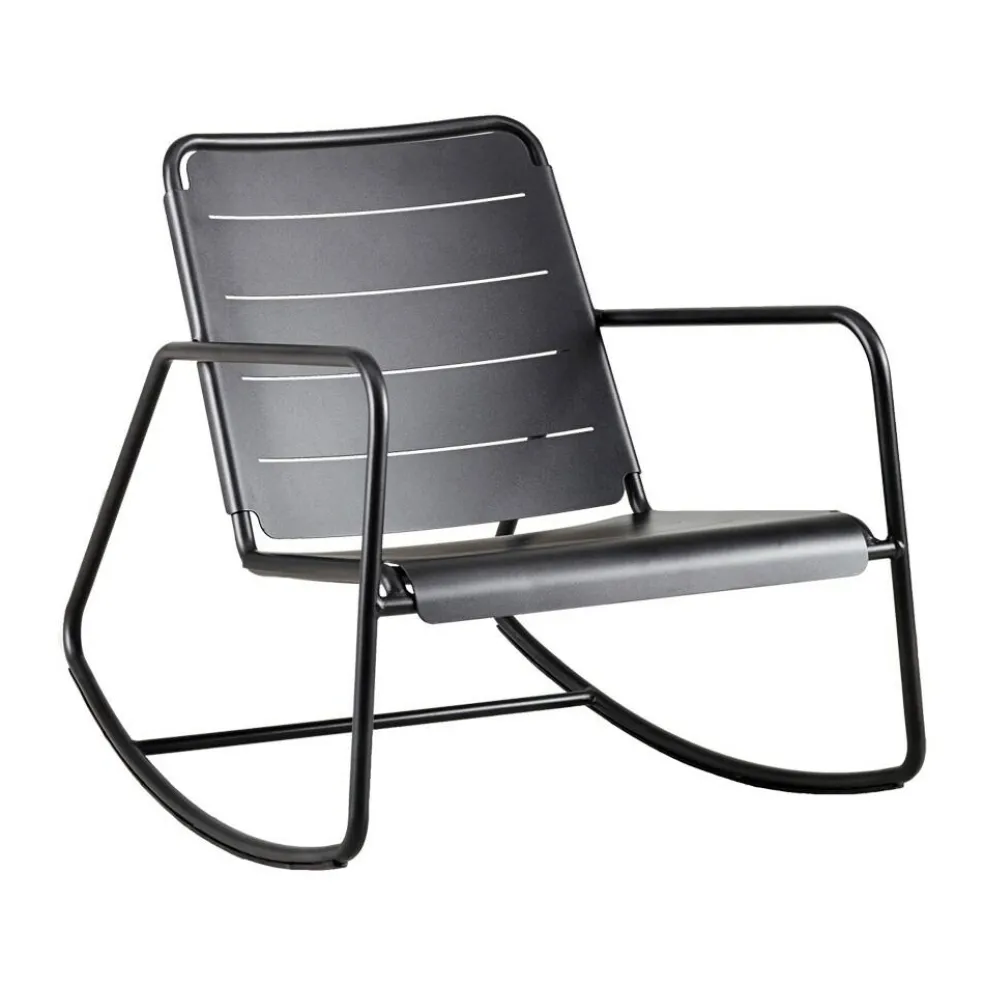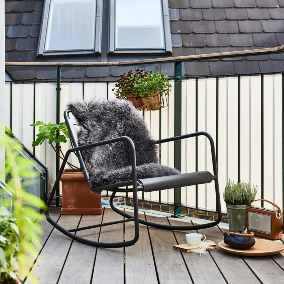 Mit seiner klaren Formensprache, durchdachten Funktionalität und wetterfesten Materialien fügt sich der Copenhagen Schaukelstuhl harmonisch in jede moderne Outdoor-Umgebung ein. Dank des pulverbeschichteten Aluminiums ist der Stuhl witterungsbeständig, langlebig und mit einem Gewicht von 7,5 kg dennoch leicht genug, um ihn flexibel zu platzieren. Die Sitzfläche und Rückenlehne sind offen gestaltet, was nicht nur optische Leichtigkeit und Transparenz verleiht, sondern auch praktisch ist: Regenwasser kann einfach ablaufen, sodass der Stuhl auch nach einem Schauer schnell wieder nutzbar ist. Mit einer Sitzhöhe von 36 cm und großzügigen Abmessungen von 72 cm Breite, 88 cm Tiefe und einer Höhe von 76 cm lädt der Copenhagen Schaukelstuhl zum entspannten Zurücklehnen und sanften Schaukeln ein – ideal für ruhige Stunden auf der Terrasse, dem Balkon oder im Garten. Pflegeleicht und alltagstauglich: Zur Reinigung genügt frisches Wasser mit milder Seife und ein weiches Tuch. Auf scharfe Reinigungsmittel sollte verzichtet werden, da sie die Oberfläche beschädigen könnten. Um die langlebige Pulverbeschichtung zu schützen, empfiehlt es sich, die Oberfläche regelmäßig trocken zu wischen.