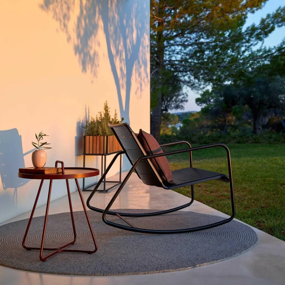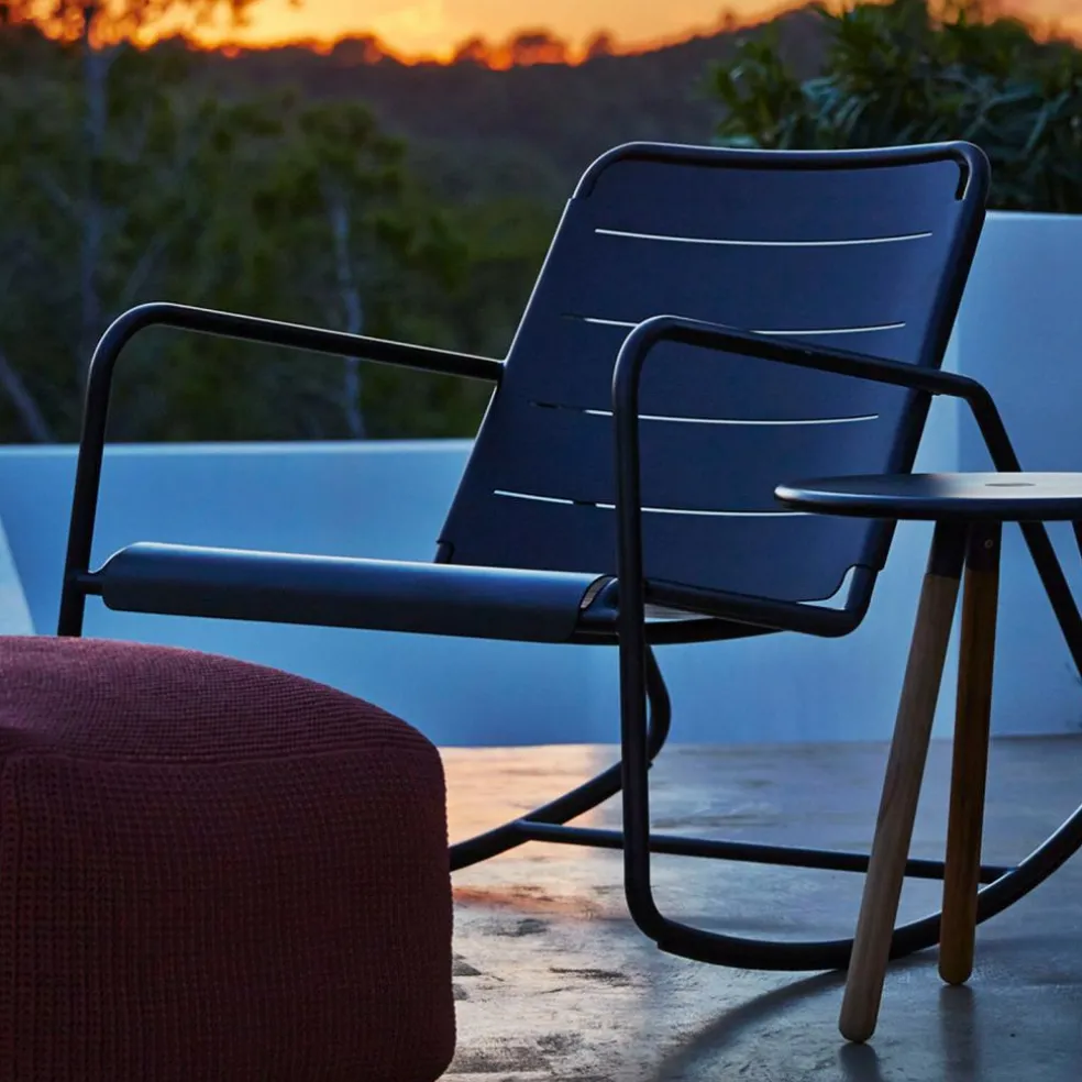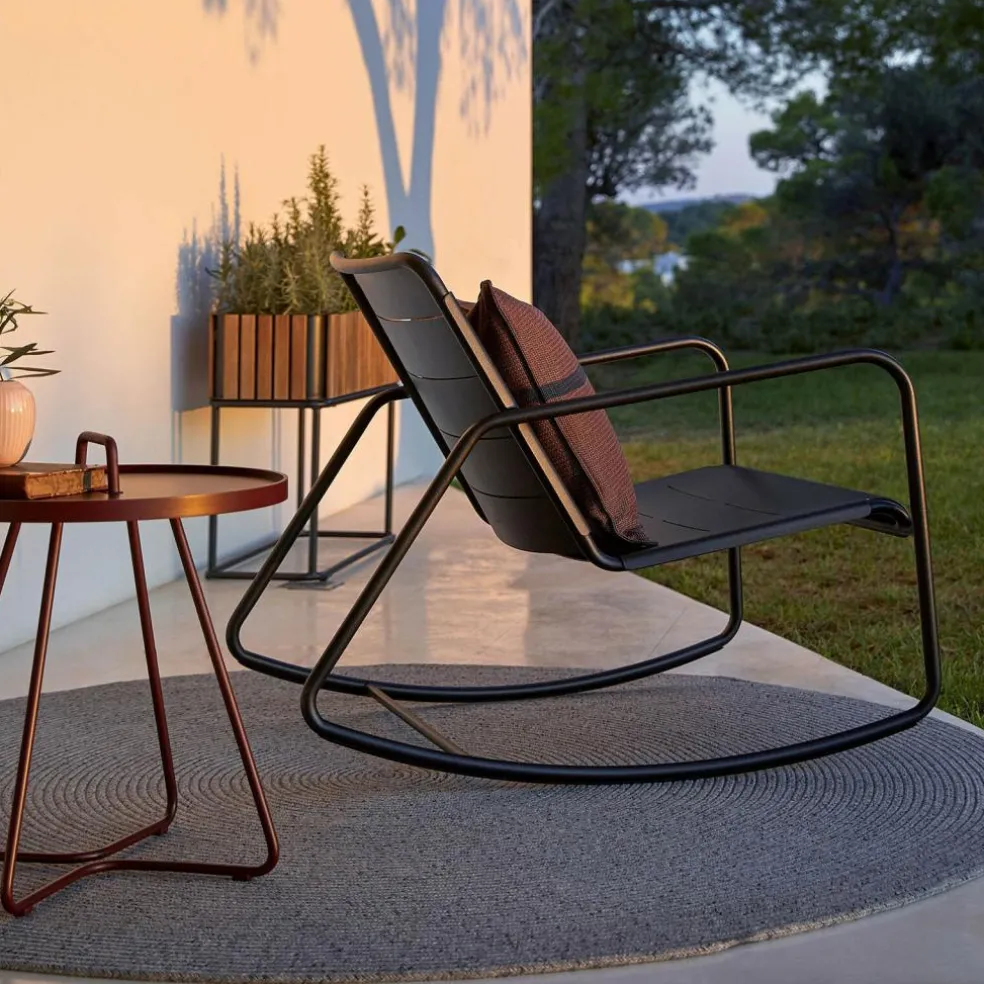 Der Copenhagen Schaukelstuhl von Cane-Line vereint skandinavische Zurückhaltung mit hoher Alltagstauglichkeit – ein eleganter Rückzugsort für den Außenbereich mit modernem Komfort.