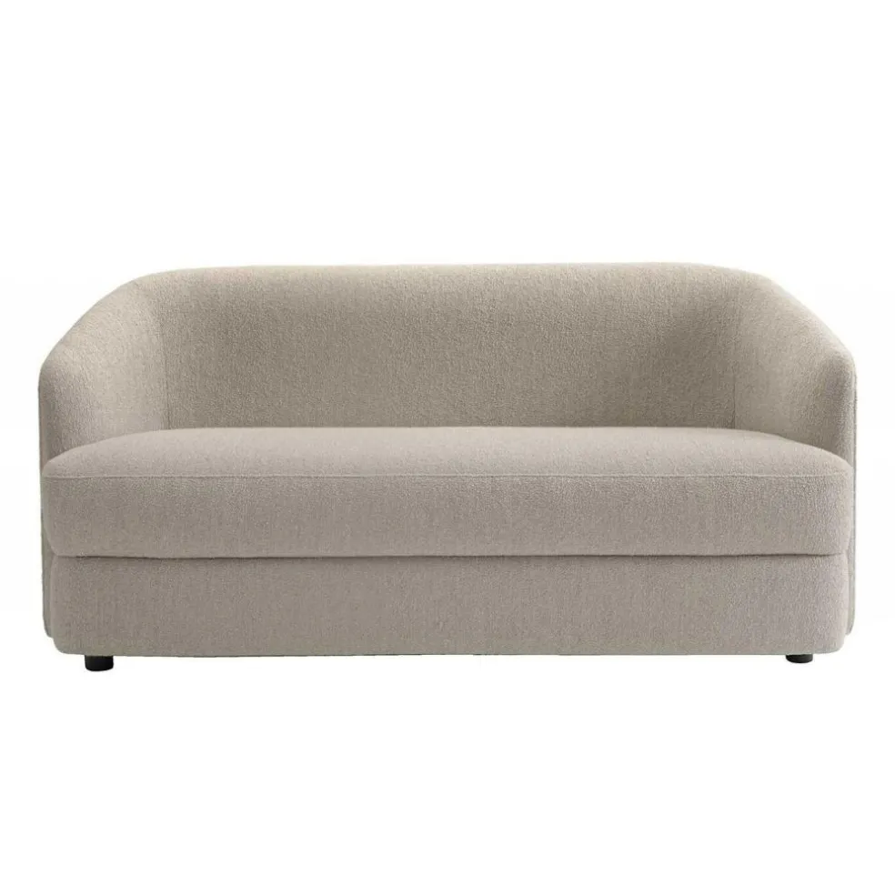 Das Covent Deep 2-Sitzer Sofa wurde vom ARDE Design Studio für die Marke New Works entworfen. Es gehört zu einer umfangreichen Serie, die auch Barhocker und Stühle umfasst. Während sich die anderen Sitzgelegenheiten auf klare Formen reduzieren lassen, charakterisieren runde Formen die Sofaserie.