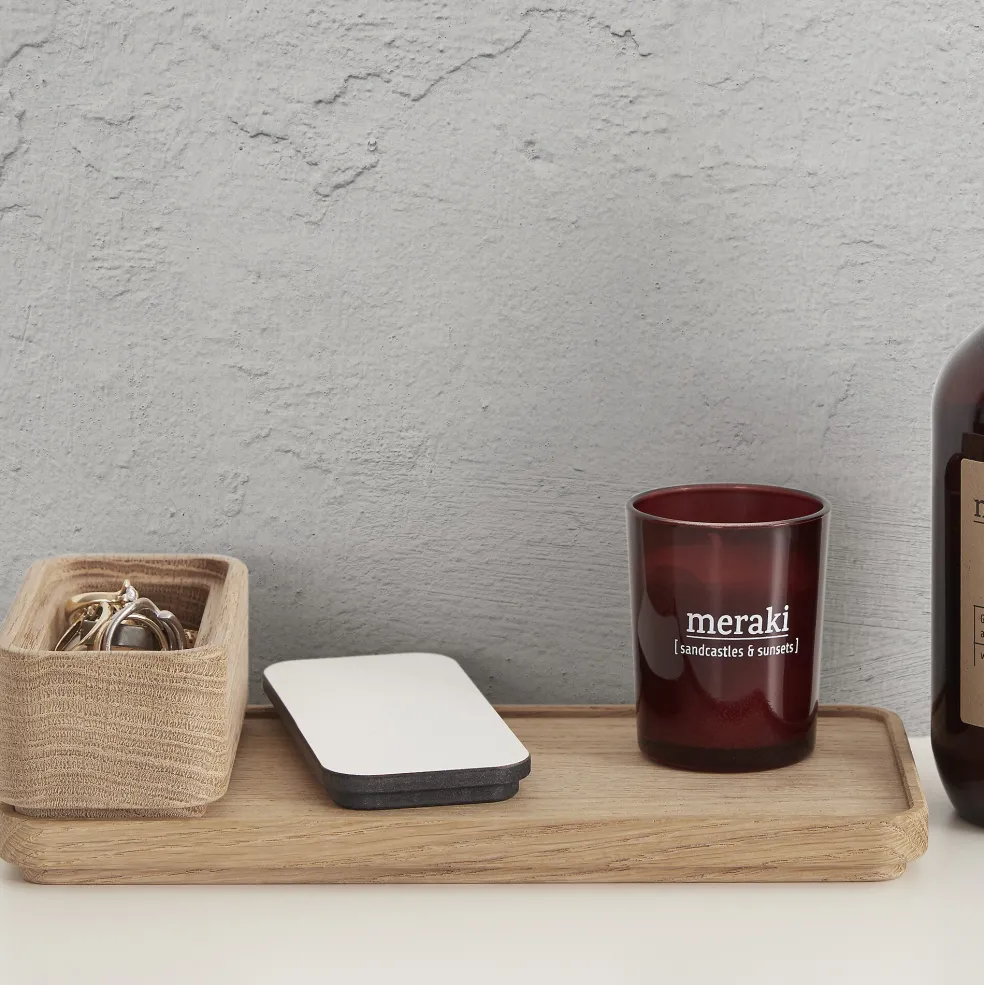Gefertigt aus massiver Eiche und mit sanft abgerundeten Ecken versehen, bringt das Tablett eine ruhige, weiche Note in moderne Wohnräume und bildet einen stilvollen Kontrast zu klaren, glatten Oberflächen. Mit seinen kompakten Maßen von 24 cm Länge, 12 cm Breite und 1,5 cm Höhe ist es vielseitig einsetzbar – sei es im Wohnzimmer als Unterlage für Kerzen, im Küchenbereich für Salz- und Pfeffermühlen oder auf dem Nachttisch zur stilvollen Aufbewahrung von Schmuck und kleinen Accessoires. Trotz seiner Schlichtheit wirkt das Tablett durch das hochwertige Material und die präzise Verarbeitung besonders edel und durchdacht. Das Create Me Tablett 24x12cm wiegt 0,2 kg. Es sollte mit einem feuchten Tuch nur von Hand gereinigt werden.