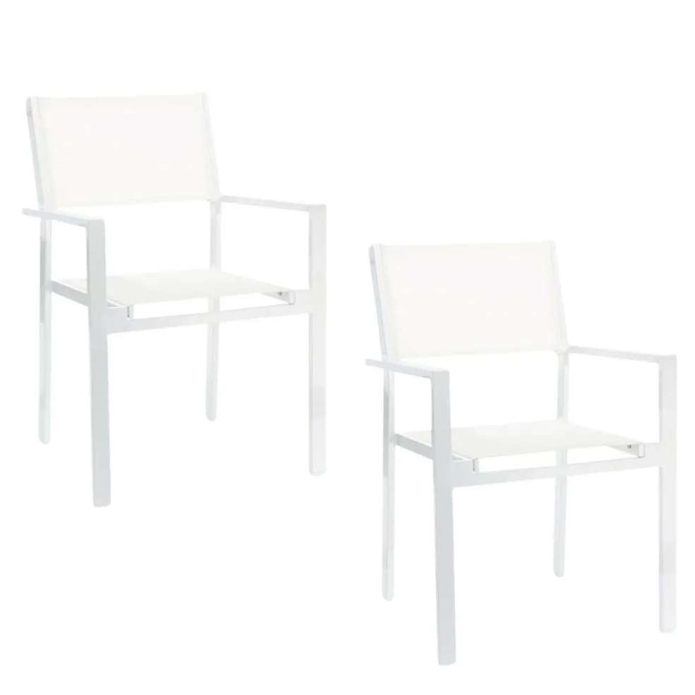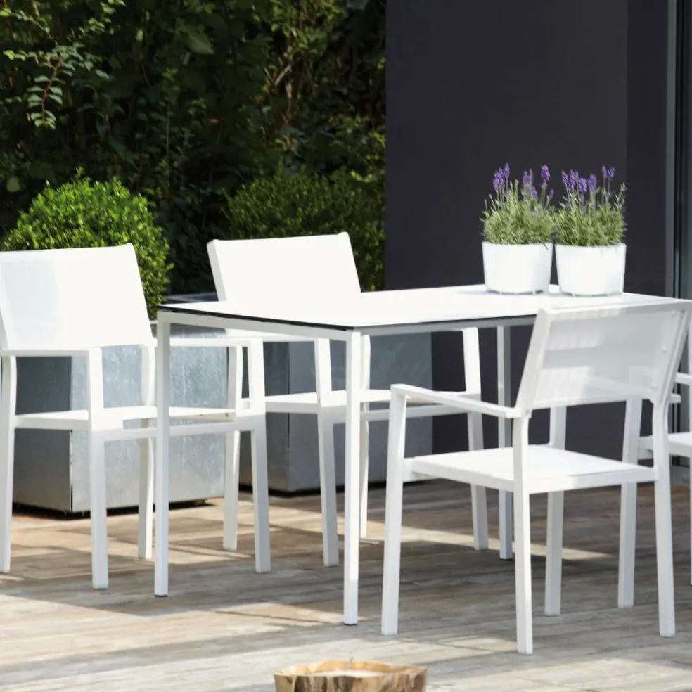 Klare minimalistische Linien und eine elegante weiße Farbgebung – das sind die wesentlichen Elemente des Cubic Gartenarmlehnstuhl 2er Sets. Mit diesem Design fügen sich die 57 x 85 x 45 cm großen Stühle bescheiden und harmonisch auf Ihrer Terrasse und in Ihrem Garten ein. Dank der bequemen Sitzhöhe von 46 cm sitzen Sie dabei besonders entspannt und bequem. Abgerundet wird das raffinierte Gesamtbild durch die Herstellungsmaterialien, für die sich Jan Kurtz hier entschieden hat. Das Cubic Gartenarmlehnstuhl 2er Set bersteht aus Aluminium. Die Bezüge sind aus Textilene gefertigt.