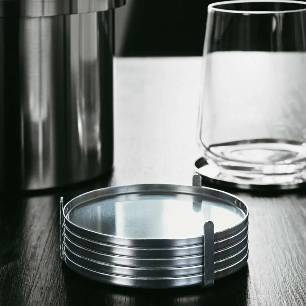 Die Cylinda Line Gläseruntersetzer, 6 Stück wurden von dem berühmten Designer Arne Jacobsen entworfen und werden von Stelton hergestellt. Der dänische Architekt und Design-Professor hat über Jahrzehnte hinweg mit der Marke zusammengearbeitet, mit dem Ziel der Entwicklung einer Reihe aus harmonischen und miteinander kombinierbaren Produkten. Teil dieser Reihe sind die Cylinda Line Gläseruntersetzer, 6 Stück, welche aus mattem Edelstahl hergestellt die perfekten Accessoires abgeben für jeden Liebhaber von funktionellen, praktischen und zugleich ausgefallenen Designs.