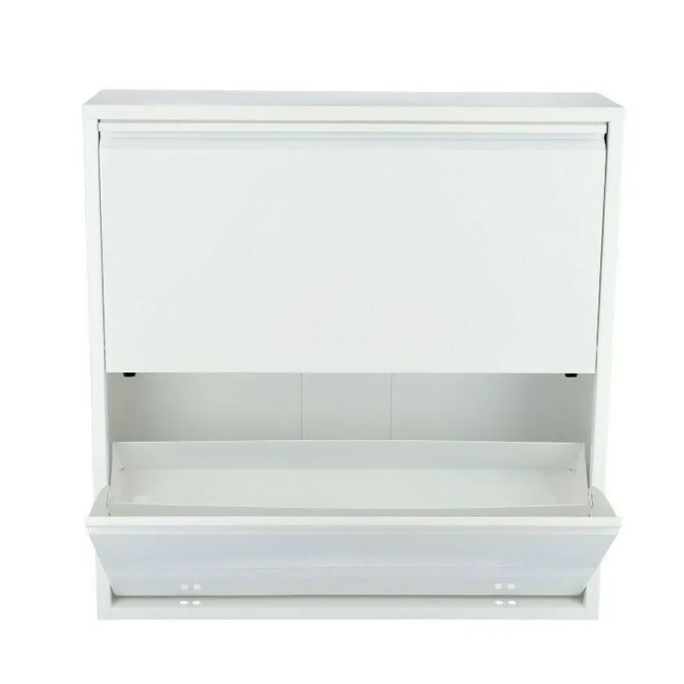 Der 22cm tiefe Double Large 2 Schuhschrank passt auch in eine enge Nische. Das funktionale Möbelstück ist 76cm breit und 77cm hoch. Die Platte oben dient als Abstellfläche: Hier sind Schlüssel, das Smartphone oder andere Gegenstände stets griffbereit.