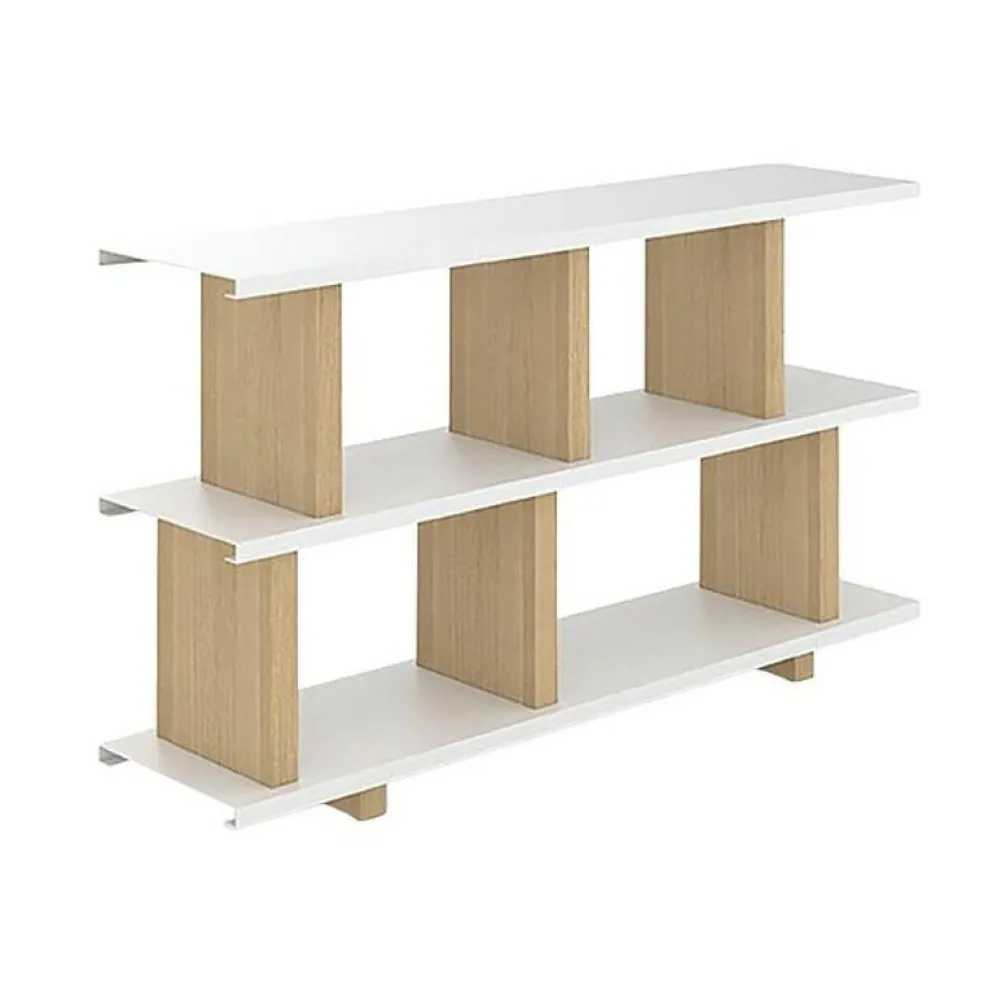 Schon beim Betrachten des eleganten Aufbewahrungsmöbels wird die Idee hinter dem Dreh Regal H 79.5cm klar. Denn das Entwurfskonzept zeigt sich sowohl in den gewählten Materialien als auch in der Farbe der Bauteile. So sind die Regalböden in pulverbeschichtetem Stahlprofil ausgeführt und lackiert, während die Stützen aus naturfarbenem massivem Eichenholz bestehen. Zwei Holzfüße sorgen für einen stabilen Stand. Zwischen den verschiedenen Regalelementen sind keine Verbindungen nötig, da Magnete in die Holzteile eingearbeitet sind, die die Regalböden fixieren.