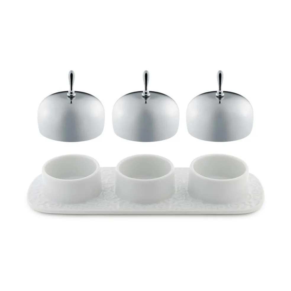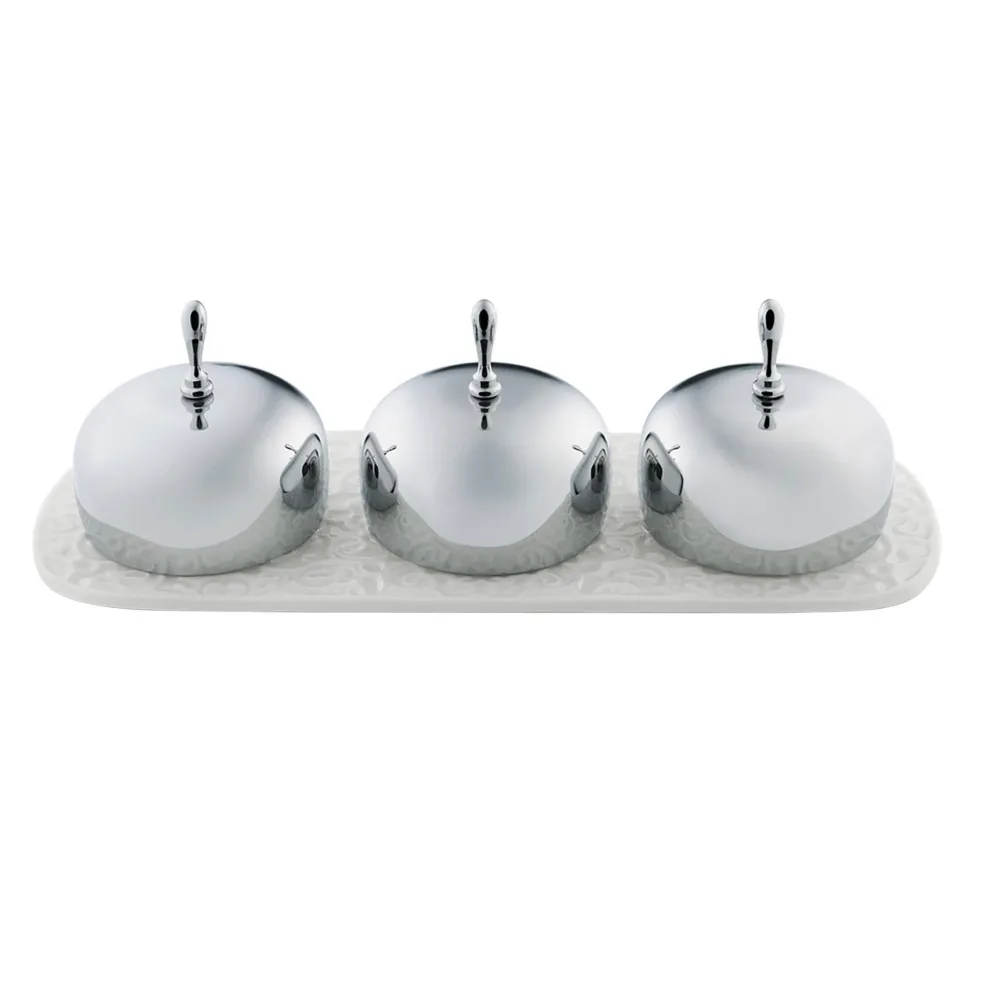 Dressed Marmeladenschalen-Set 3tlg. Das Dressed Marmeladenschalen-Set 3tlg. ist ein eleganter Blickfang für den Frühstückstisch des immer wieder experimentierfreudigen Designers Marcel Wanders, der die Kollektionen der Design-Schmiede Alessi mit einem neuen Lebensgefühl versieht.