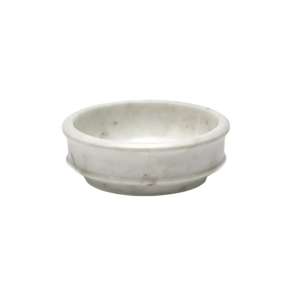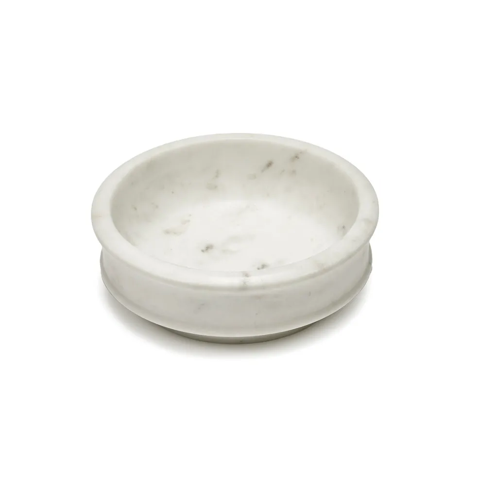 Selbst wenn die Dune by Kelly Wearstler Marmor Schale S gerade nicht gefüllt ist, sieht sie elegant aus. Wenn darin Bonbons, Obst oder andere Leckereien aufbewahrt werden, greift man umso lieber zu. Die edle Marmorschale ist für trockene Nahrungsmittel geeignet, wird jedoch auch gerne für Dekorationsmaterial verwendet. Die Dune by Kelly Wearstler Marmor Schale S entsteht in Handarbeit und wird poliert. Der Durchmesser der runden Schale ist unten deutlich geringer als oben und daher wirkt sie leicht. Die Taillierung an der Seite ist ein weiteres stilvolles Detail. Zarte Marmorierungen durchziehen den Werkstoff. Daher ist jede Dune by Kelly Wearstler Marmor Schale S ein unverwechselbares Einzelstück.