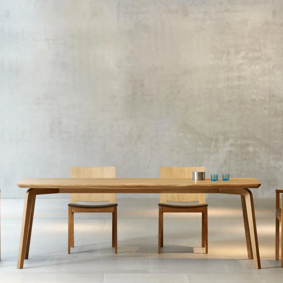Gefertigt wird der Massivholz-Tisch von aus geölter Eiche. Besonderes Merkmal bei Dweller von Jan Kurtz: Die spinnenartig nach außen ausgestellten Tischbeine als Basis für eine abgerundete, solide Tischplatte! Dadurch wirkt der Esstisch aus massivem Holz überaus harmonisch.