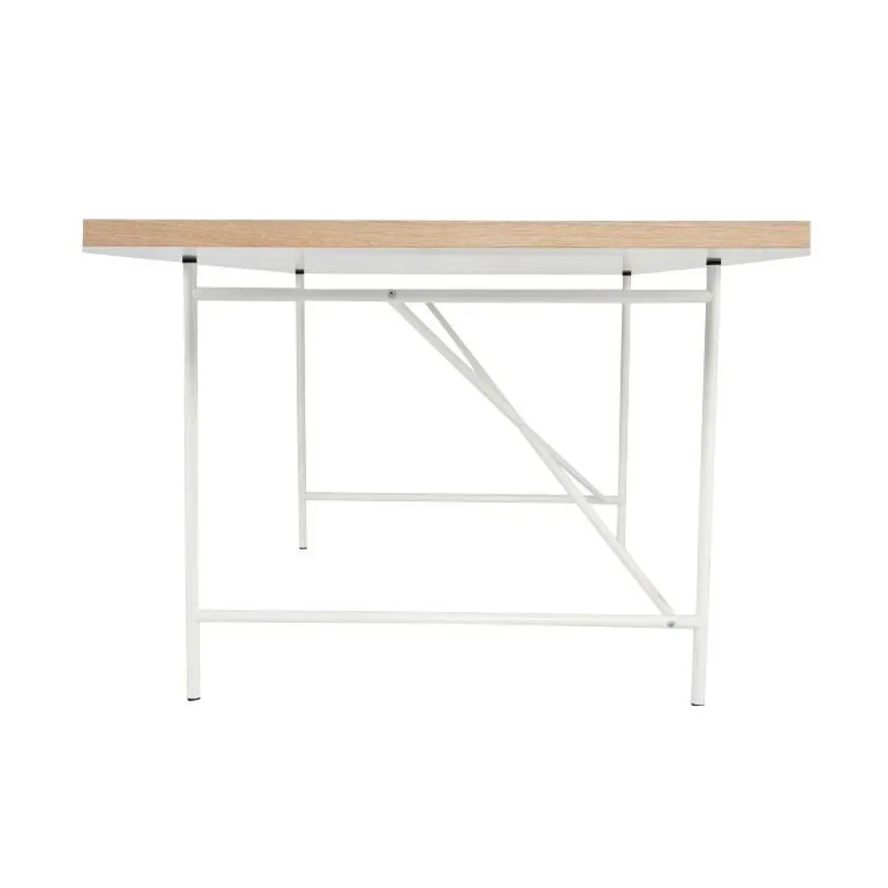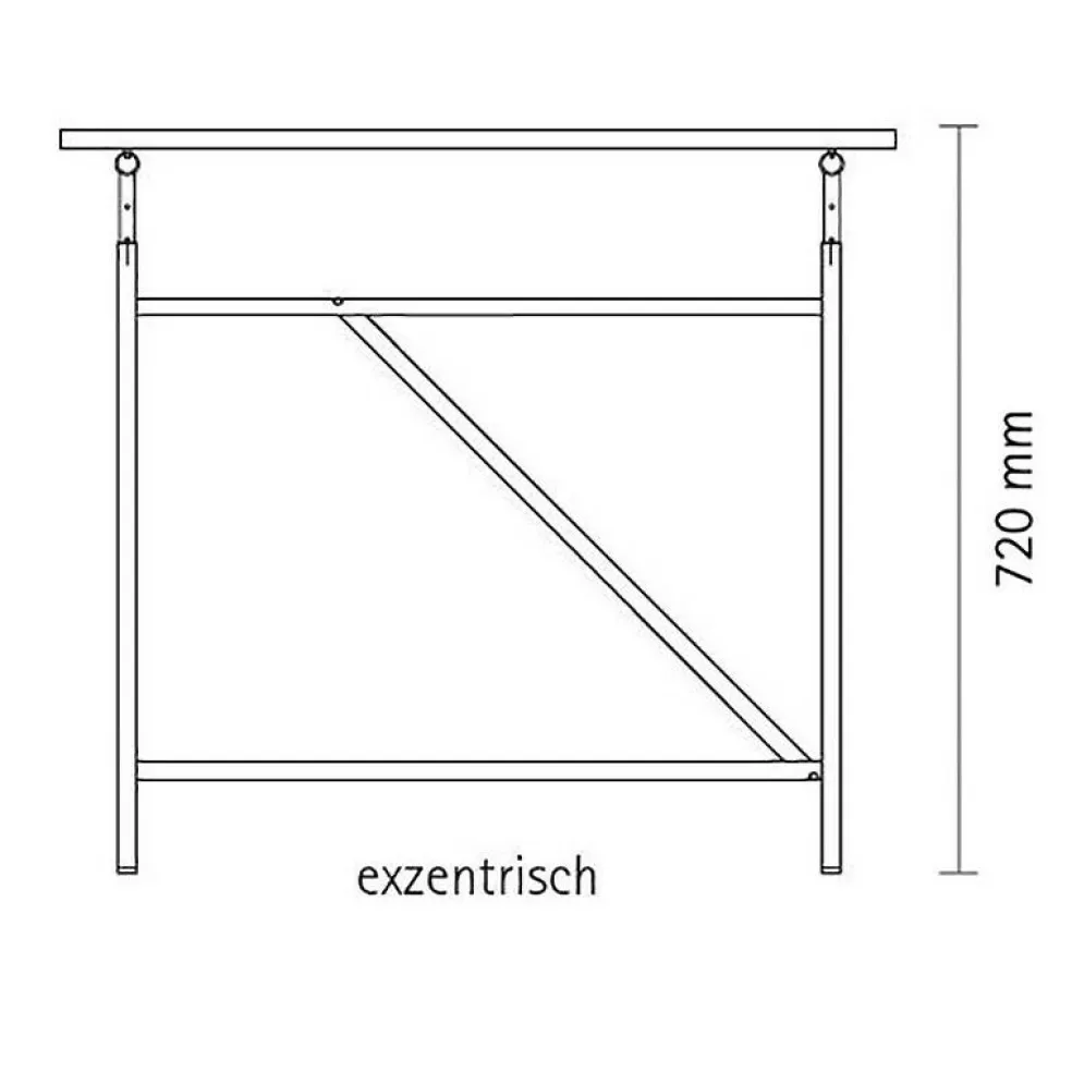 Die Tischplatte des Eiermann 1 Tisch 90x200cm Gestell exzentrisch ist aus einer Spanplatte mit einer Dicke von 2,8 cm gefertigt und mit Melamin beschichtet. Dieses Verfahren macht die Oberfläche unempfindlich gegen Schmutz. Der Tisch erreicht eine Höhe von bis zu 72 cm. Er ist 90 cm tief und 200 cm breit.