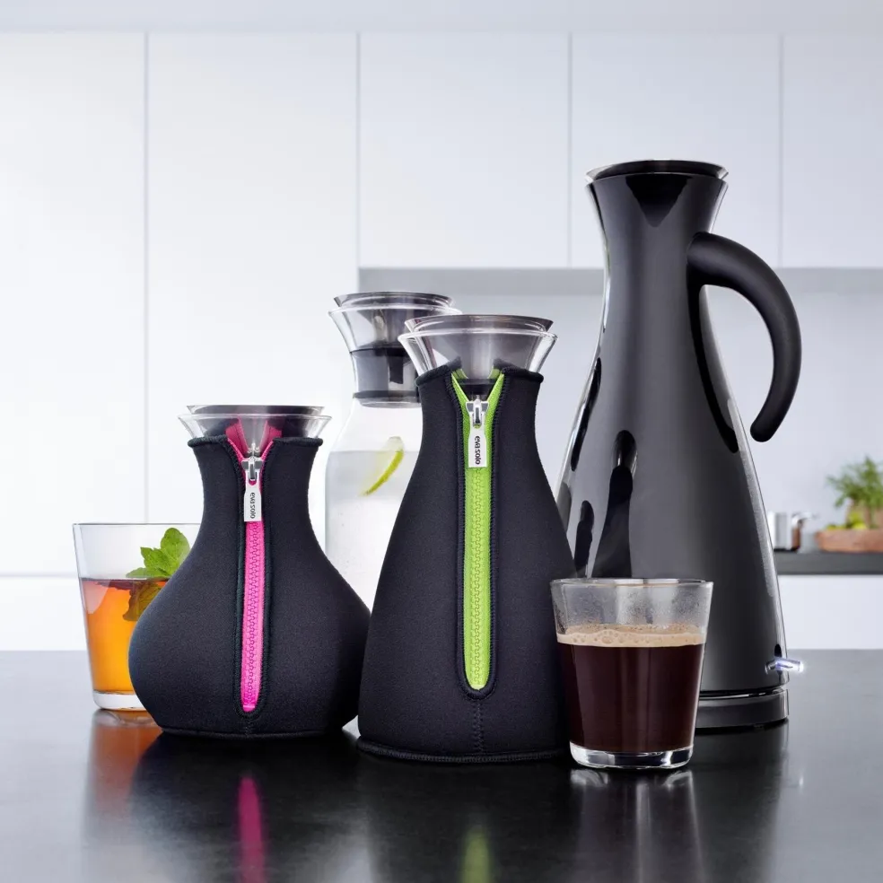 Der Eva Solo Wasserkocher spricht dieselbe Formensprache wie die Eva Solo Isolierkanne, die ebenfalls von den zwei Designern kreiert wurde. Viel zu schön, um in der Küche sein Dasein zu fristen, ist der Wasserkocher so gestaltet, dass er als Karaffe für heiße Getränke überall hin mitgenommen werden kann. Dank dem tropffreien Ausguss und dem ergonomischen Henkel mit Gummibeschichtung, wird das Eingießen zum Kinderspiel, auch am Arbeitsplatz.