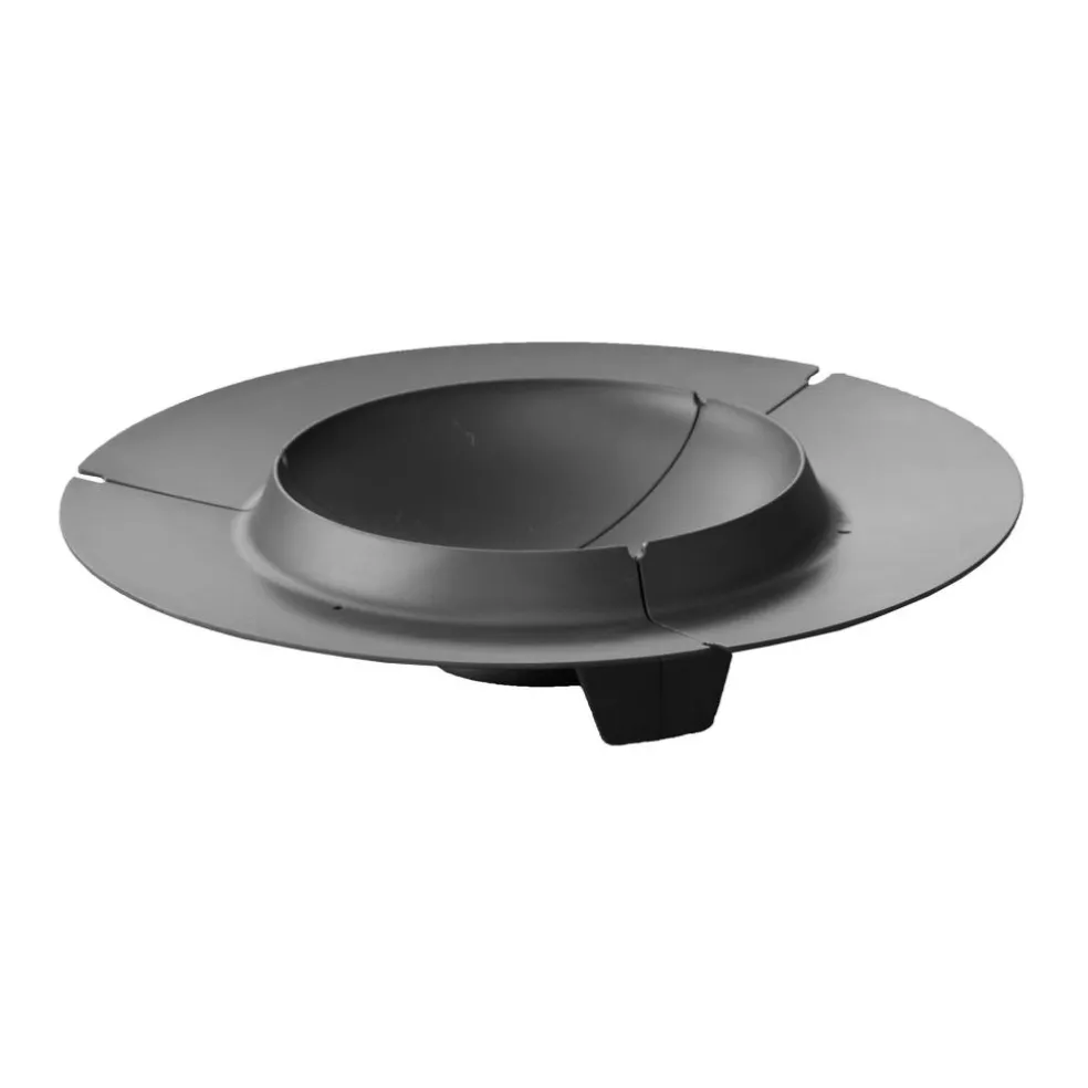 Kreisrund ist die skandinavisch inspirierte Feuerschale mit ihrem Durchmesser von 108cm bei einer Höhe von 22cm und einem soliden Standgewicht von 60kg gearbeitet. Die frei stehende Schale verfügt in ihrer breiten Umrandung über drei schmale Einschnitte. Sie dienen dem funktionalen Abfluss von Regenwasser und sind gleichzeitig ein ästhetisches Detail. Die Ember Feuerschale Ø108cm steht stabil auf drei Standfüßen. Diese sind eingerückt positioniert, sodass die Schale fast frei zu schweben scheint. Auf die großzügige Schale für das Feuerholz kann optional ein Grillrost aus der gleichen Kollektion gesetzt werden. So lässt sich in geselliger Runde leckeres Grillgut direkt über dem offenen Feuer grillen. Die Ember Feuerschale Ø108cm ist komplett aus Gusseisen gefertigt.