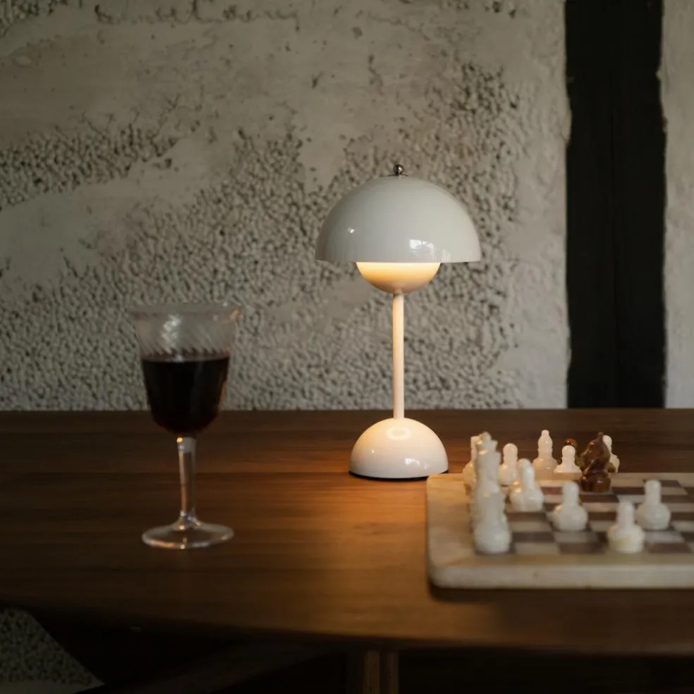 Die Flowerpot VP9 LED Akku Tischleuchte wurde von Verner Panton für die Marke &Tradition entworfen. Sie erweitert die viel beachtete Flowerpot-Kollektion, die im Jahr 1968 entstand.