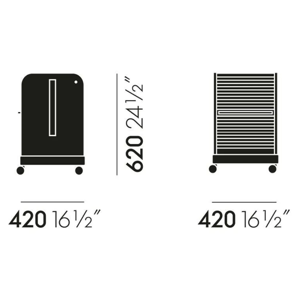 Der Follow Me 1 Rollcontainer hat eine praktische Größe und kann unter dem Schreibtisch untergebracht werden. Der Rollcontainer ist 42 cm breit und ebenso lang. Die Höhe beträgt 62 cm. Der Follow Me 1 Rollcontainer ist in verschiedenen Farben erhältlich. Es gibt auch eine weitere, größere Variante aus derselben Kollektion.
