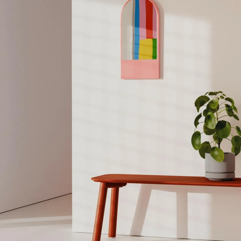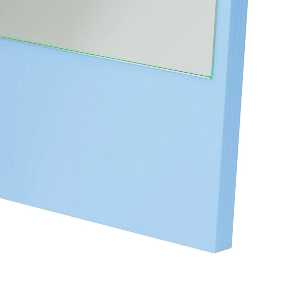 Klein, dafür mit besonders viel Charme präsentiert sich der Friedrich Mini Spiegel 28x58cm. Das 2023 in Berlin designte und ausschließlich in Deutschland hergestellte Objekt ist modernes Dekor und praktischer Gebrauchsgegenstand in einem. Es besticht durch eine harmonische Kombination aus geraden Linien und weichen Rundungen. Die oben abgerundete, fein geschliffene Spiegelfläche aus Glas liegt auf einem besonders im unteren Bereich sichtbaren Rahmen aus Multiplex, einem Sperrholz, das mit Eschenfurnier beschichtet und anschließend lackiert wurde. Das Holz stammt aus FSC®-zertifizierter Herstellung und damit aus nachhaltig betriebener Forstwirtschaft. Das zurückhaltende, an Rundbogenfenster erinnernde Design steht in einem spannenden Kontrast zu den expressiven Farben, in denen der Spiegel erhältlich ist. Die jeweilige Farbe wurde dabei bewusst nicht zu deckend aufgetragen, sodass die natürliche Maserung gut sichtbar bleibt und durch die Leuchtpigmente sogar noch hervorgehoben wird.