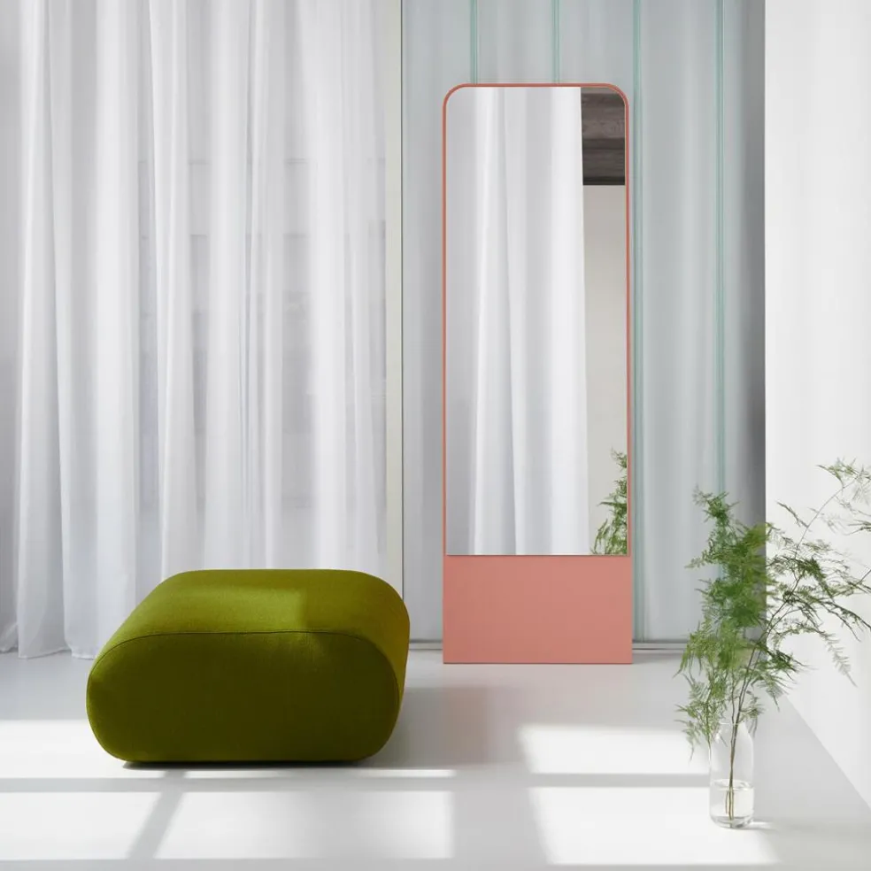 Im Profil besticht der rechteckige Friedrich Spiegel 60x185cm durch feine Linien und offenbart erst in der Fläche seine volle ästhetische Kraft. Neben den geraden Linien prägen oben leicht abgerundete Kanten das Gesamtbild. Friedrichs fein geschliffenes Spiegelglas liegt auf einem Rahmen aus lackiertem Sperrholz mit Eschenfurnier. Das Verhältnis zwischen Spiegelglas und dem vor allem im unteren Bereich sichtbaren Holz führt dazu, dass sich das Modell je nach Farbwahl nahtlos in jedes moderne Wohnambiente einfügt oder im Raum einen markanten Akzent setzt. Bewusst ist der Lack nicht zu deckend aufgetragen, um die natürliche Maserung des Holzes sichtbar zu halten und durch die Leuchtpigmente der Farbe zusätzlich zu verstärken. Das verarbeitete Holz ist FSC®-zertifiziert und stammt damit aus nachhaltiger Forstwirtschaft.