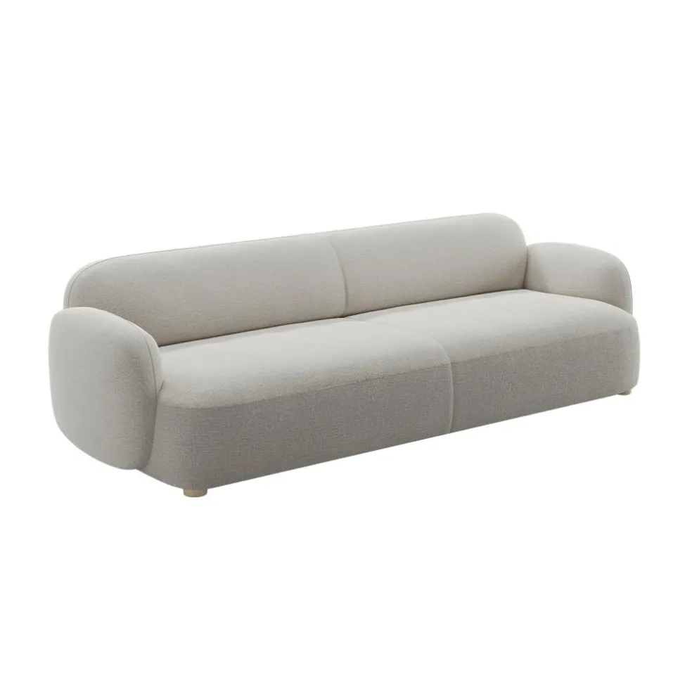 Perfekt zum Faulenzen, für ein entspanntes Nickerchen oder einen geselligen Fernsehabend mit der Familie: Das Gem 3-Sitzer Sofa 250x97cm verspricht viele gemütliche Stunden. Seine tiefe Sitzfläche kann nicht nur bis zu drei Personen aufnehmen, sie bietet auch viel Platz zum Liegen. Die breite Rückenlehne und die niedrigen Armstützen garantieren zudem einen komfortablen Sitz. Der grob texturierte Stoffbezug macht das Gem 3-Sitzer Sofa 250x97cm strapazierfähig. Dank der hochwertigen Kaltschaumfüllung darunter behält das Designmöbel auch nach längerer Beanspruchung seine attraktive, sanft gerundete Form. Für eine hohe Stabilität des Sitzmöbels sorgt eine Unterkonstruktion aus Sperrholz und Beine aus Eiche. So ist das Gem 3-Sitzer Sofa 250x97cm ein langlebiges Sitzmöbel und ein attraktiver Hingucker im Wohnraum. Das formschöne Designstück passt ideal in ein gemütliches Zuhause und eignet sich ebenso gut für eine Lounge oder die Lobby eines Hotels.
