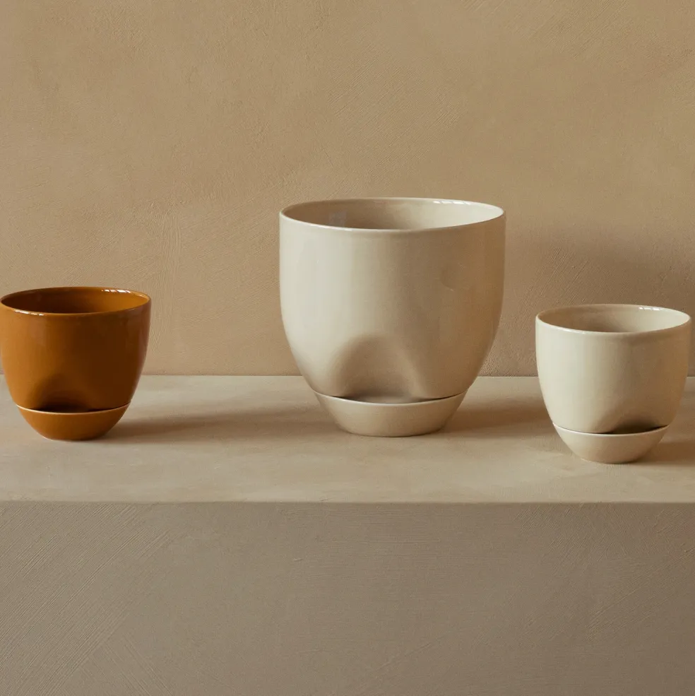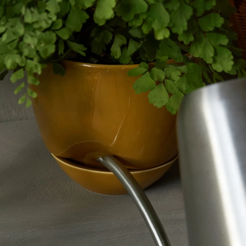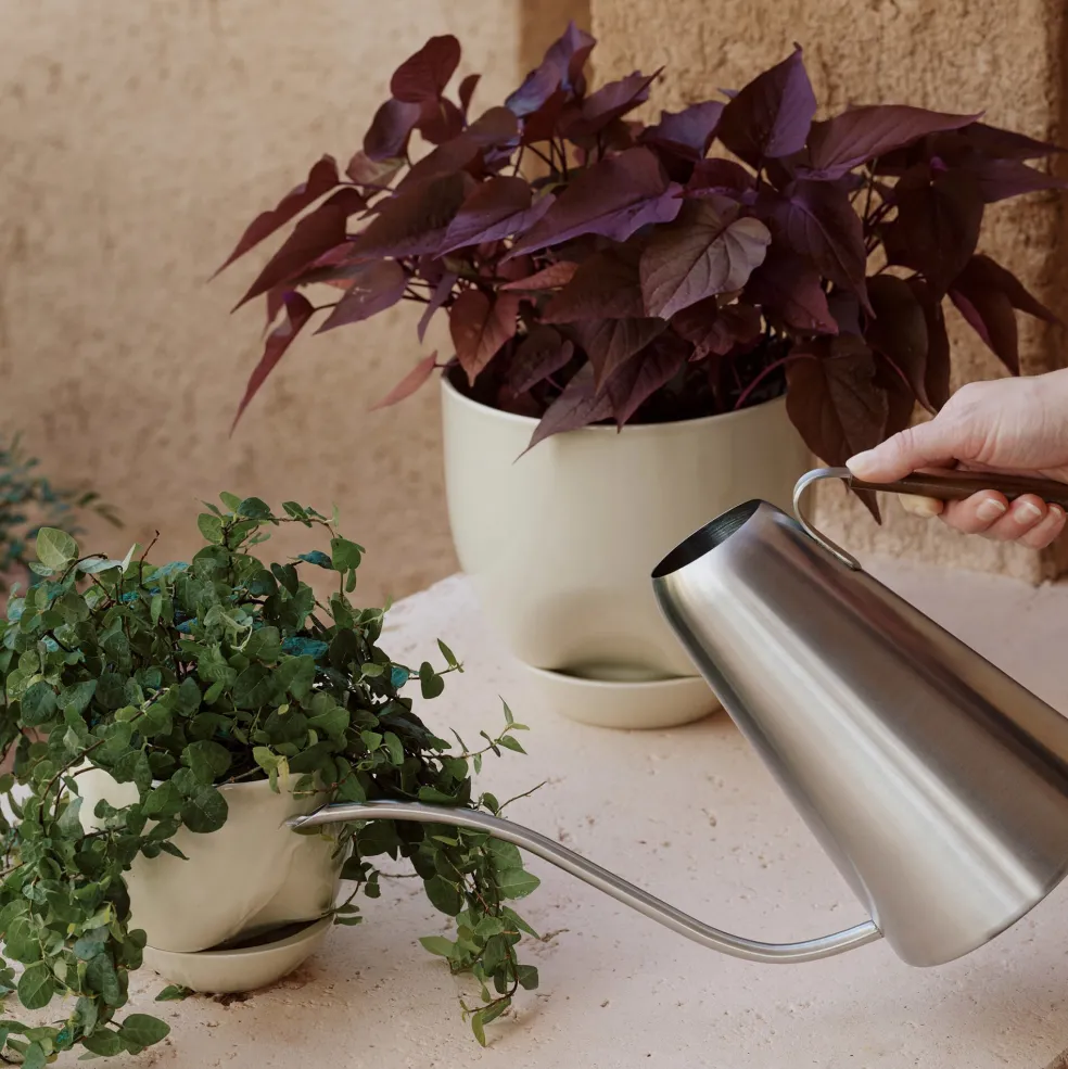 Die äußere Hülle aus glasiertem Steingut verleiht dem Hydrous Pflanztopf Ø 12cm eine ruhige, zeitlose Ausstrahlung. Doch das Besondere verbirgt sich im Inneren: Ein Nylondocht führt Wasser von der darunterliegenden Schale direkt ins Erdreich, wodurch die Pflanze kontinuierlich mit Feuchtigkeit versorgt wird – ganz nach ihrem tatsächlichen Bedarf. Mit seiner kompakten Größe von 13 cm Höhe und 12 cm Durchmesser eignet sich der 0,55 kg leichte Hydrous Pflanztopf Ø 12cm hervorragend für kleine Pflanzen auf Fensterbänken, Regalen oder Schreibtischen. Das Zusammenspiel aus Funktionalität und Ästhetik macht ihn zu einem praktischen Begleiter im Alltag – ideal für alle, die sich unkompliziert um ihr Grünpflanzen zu Hause kümmern möchten. Wer mehr Raum benötigt, findet das clevere System übrigens auch im größeren Hydrous Pflanztopf Ø 20cm. Bitte beachten: Der Hydrous Pflanztopf Ø 12cm ist nur für die Nutzung im Innenbereich geeignet. Eine Nutzung im Außenbereich ist nur bei vorsorglicher Pflege und einem Schutz vor jeglichen Wettereinflüssen ratsam.