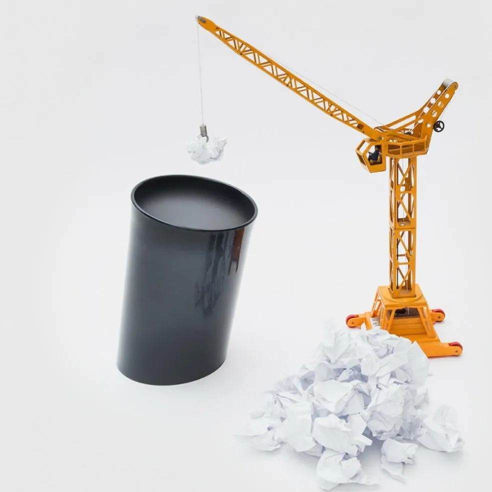 Der schiefe Papierkorb „In Attesa“ ist einer der Design-Klassiker von Enzo Mari und ein überragender, zeitloser Gebrauchsgegenstand, der in keinem design-orientiertem Büro fehlen darf.