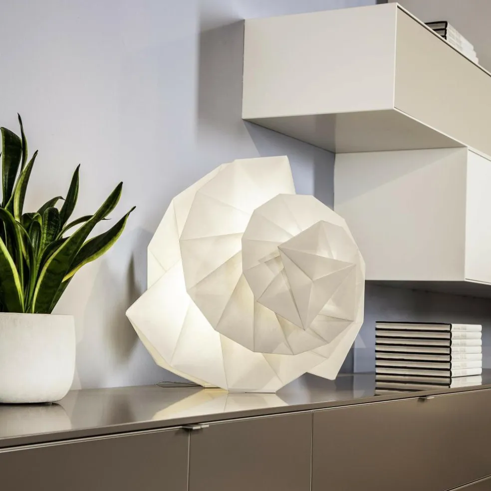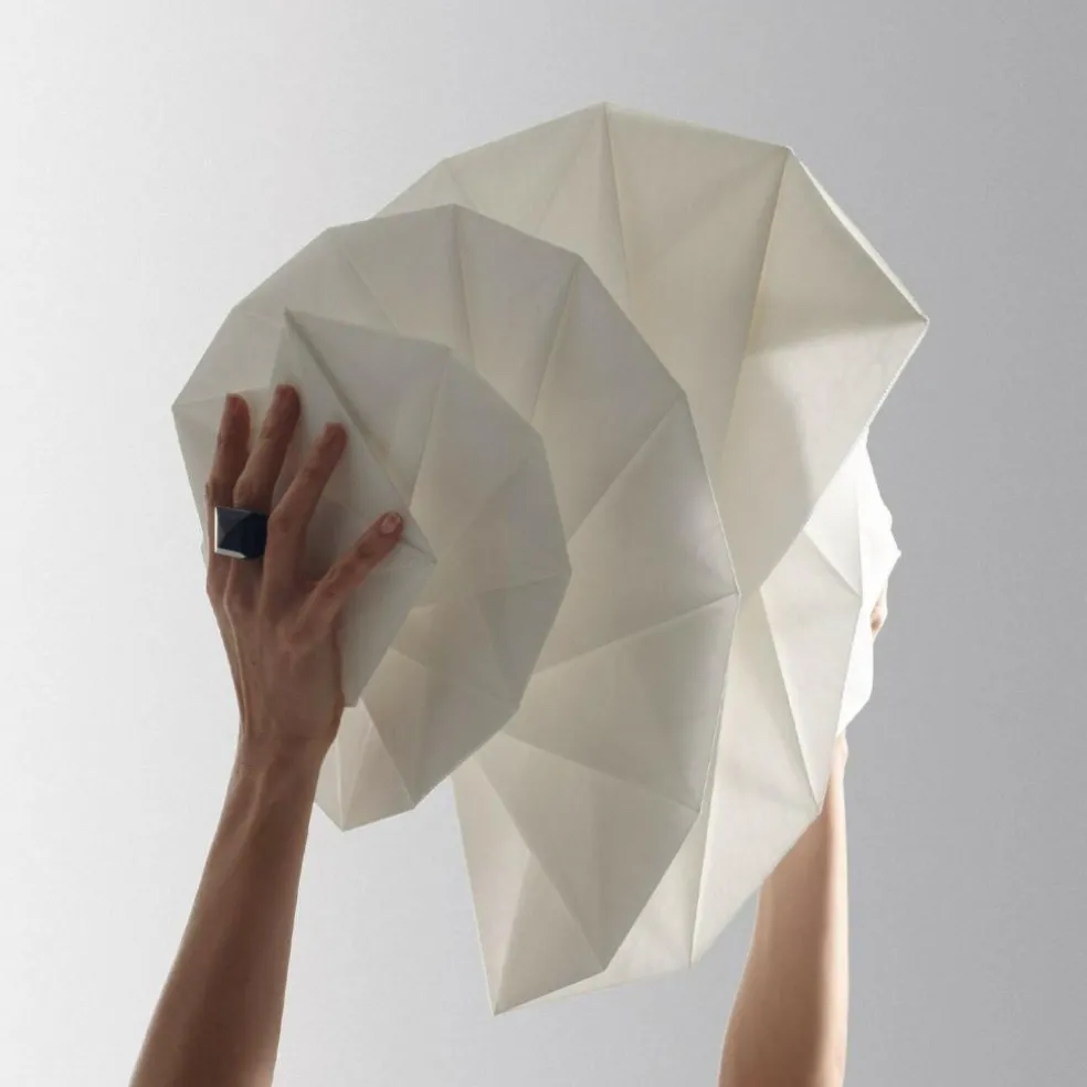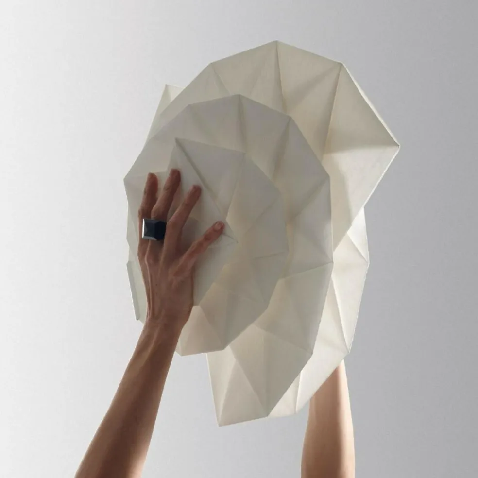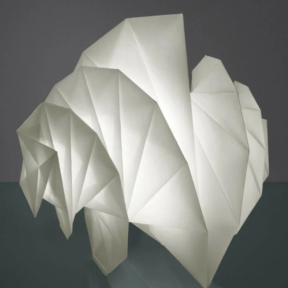Die Idee hinter der Kooperation IN-EI: Nachhaltigkeit, japanische Tradition und moderne Technologie in Design-Leuchten zu verbinden! Die dreidimensionale IN-EI Mendori Tischleuchte von Artemide erinnert an die Papierfaltkunst Origami und wirkt wie eine moderne Skulptur.