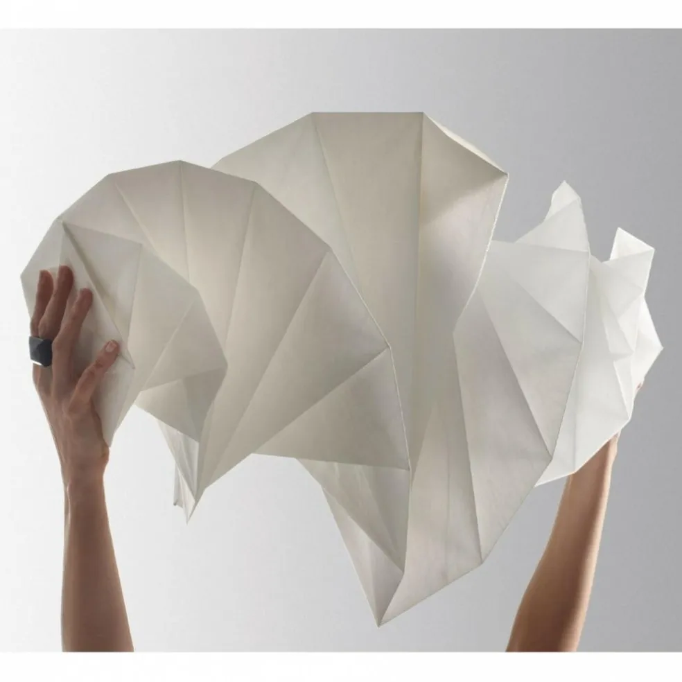 Durch die spezielle Falttechnik bleibt die IN-EI Mendori Tischleuchte von Artemide formstabil, lässt sich aber flach falten und einfach transportieren oder aufbewahren!