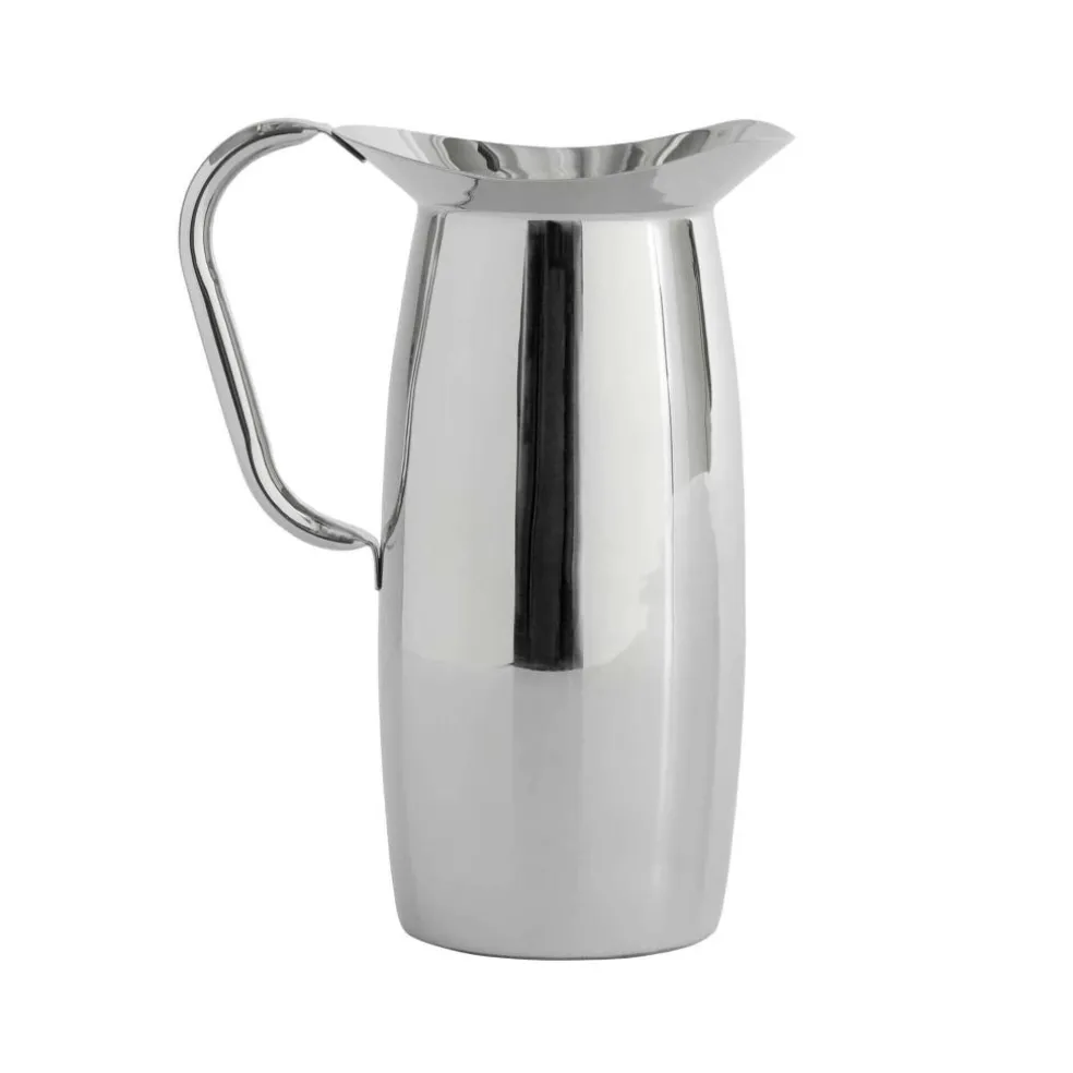 Wer klare Linien und durchdachte Schlichtheit schätzt, wird beim Indian Krug Tall von HAY fündig. Mit seiner hohen, schlanken Silhouette und dem dezenten Glanz des Edelstahls ist dieser Krug ein modernes Statement für jede Tafel. Gefertigt aus widerstandsfähigem Edelstahl, überzeugt der Krug nicht nur durch seine Optik, sondern auch durch seine Alltagstauglichkeit. Er ist leicht und wiegt nur 360 g, liegt dank des gut geformten Henkels sicher in der Hand und eignet sich ideal zum Ausschenken von kalten oder warmen Getränken. Die Kombination aus Funktionalität und Ästhetik macht ihn zu einem vielseitigen Begleiter – vom Frühstück bis zum Abendessen. Der breite umlaufende Rand macht das Einschenken einfach und tropfsicher. Mit einer Höhe von 19,5 cm sowie einer Breite von 15 cm und einer Länge von 9,2 cm passt der Indian Krug Tall problemlos in offene Regale, Vitrinen oder auf den gedeckten Tisch. Trotz seines schlanken Formats bietet er ausreichend Volumen – ideal für Wasser, Säfte oder Eistee.