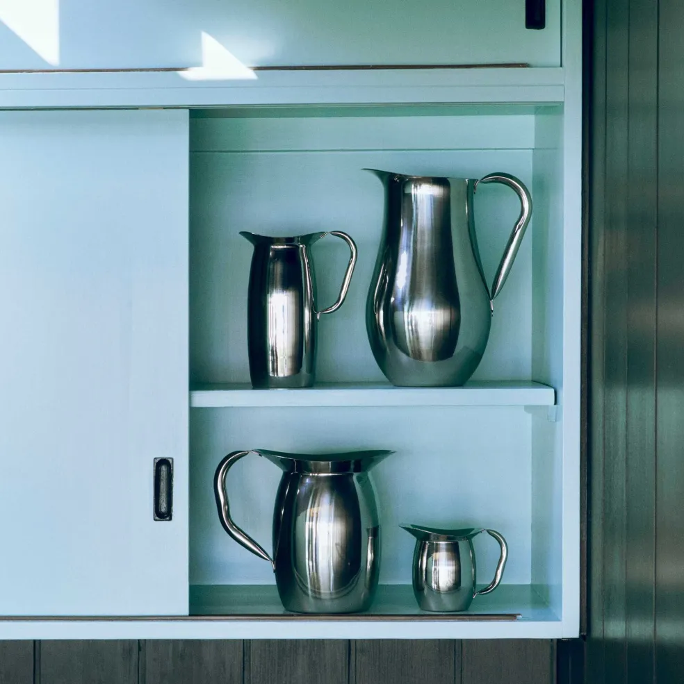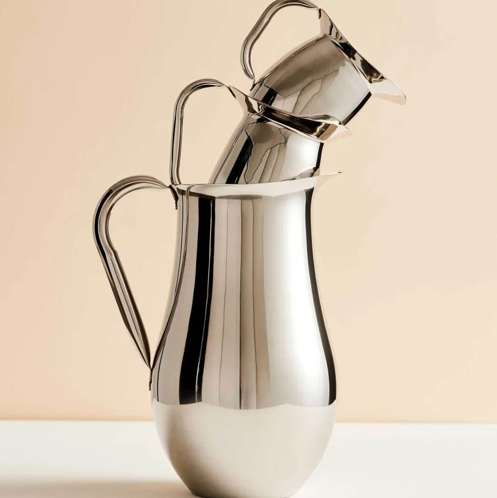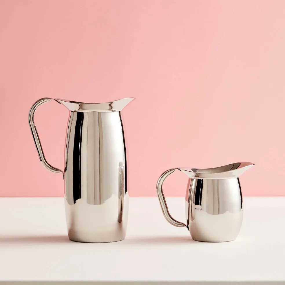 Mit seinem reduzierten Design und der spiegelnden Edelstahloberfläche bringt der Indian Krug XS eine moderne Eleganz in Küche, Büro oder Wohnbereich – ohne sich aufzudrängen. Dank seiner kompakten Größe von 10,2 cm Höhe, 13,3 cm Länge und 8,5 cm Breite eignet sich der kleine Krug ideal für Milch, Dressings oder kleinere Mengen an Getränken. Ideal für den Frühstückstisch, zur Kaffeetafel am Nachmittag oder als minimalistisches Deko-Objekt mit funktionalem Anspruch. Gefertigt aus 100 % Edelstahl, ist der Krug mit 200 g leicht. Er ist zudem langlebig und pflegeleicht. Der stabile Henkel sorgt für eine komfortable Handhabung, während der breite und gut geformte Auslauf das Ausgießen sicher und tropfarm gestaltet. Seine schlichte Silhouette macht den Indian Krug XS zu einem vielseitigen Begleiter für viele Gelegenheiten – ob in der Küche, auf dem Tisch oder im Büro.
