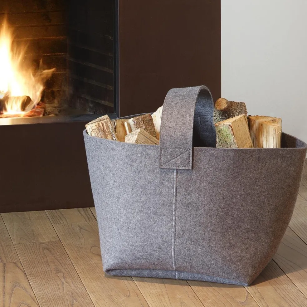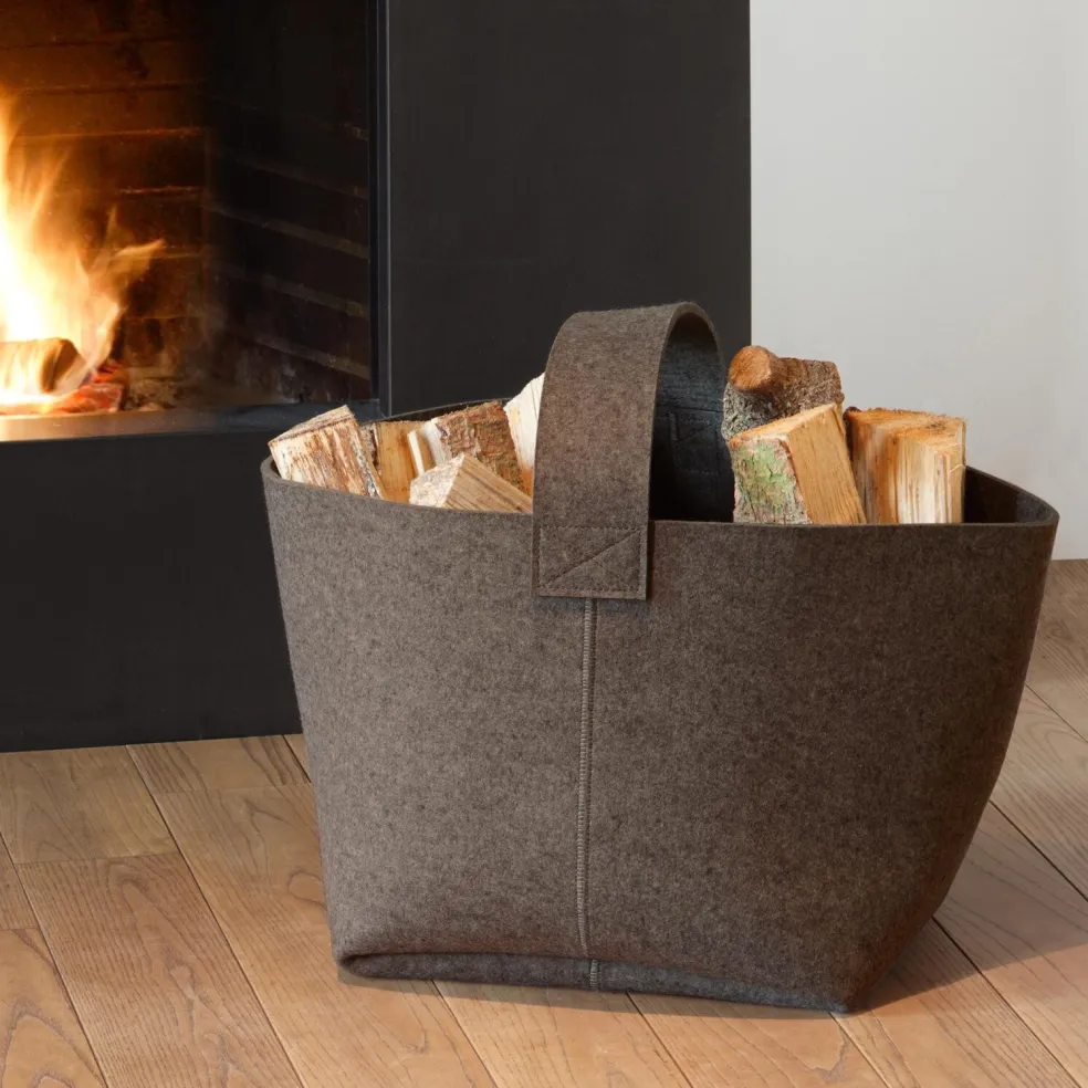 Der schöne Kaminholzkorb aus Filz wurde von Designerin Bernadette Ehmann für das deutsche Label HEY-SIGN entworfen.