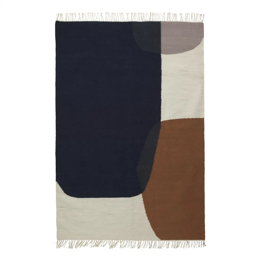 Der Kelim Merge Teppich wurde von den Designern des Herstellers Ferm Living entworfen. Harmonisch geschwungene Formen des Dekors und stimmige Farbtöne entstammen dem traditionellen Kelim-Handwerk. Die einzigartige Charakteristik des Teppichs ist geprägt durch das bei der Herstellung verwendete Material. Natürliches Wollgarn und robustes Kelim-Gewebe sorgen für eine raue, aber dennoch angenehme Oberflächenbeschaffenheit.