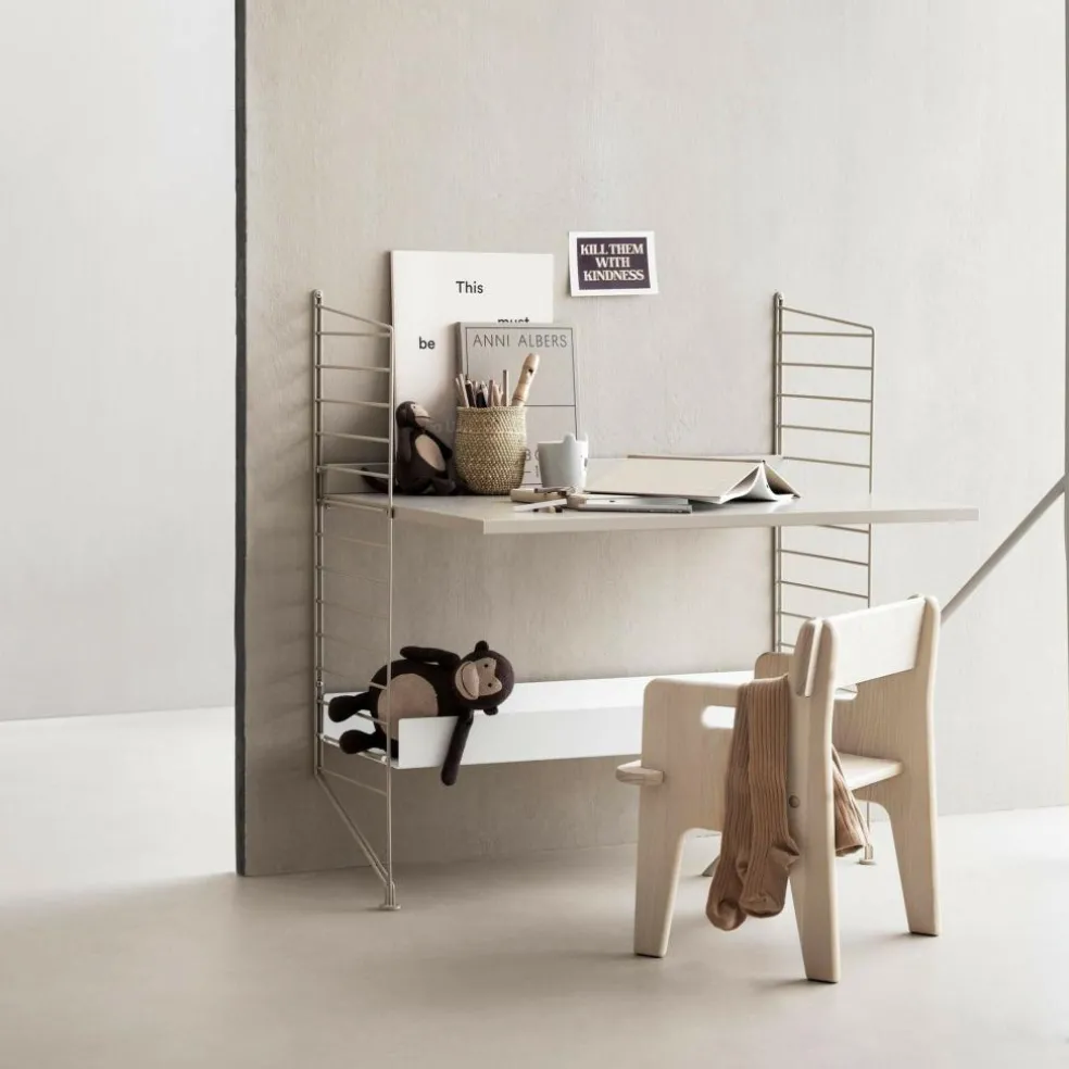 Die Kinderzimmer Kombination 78x85x30cm des Herstellers String besteht aus zwei filigranen Seitenwänden aus Metall, einer Schreibtischplatte und einem weiteren Regalboden aus lackiertem Holz. Das Regalsystem vereint formschöne Ästhetik mit einem feinen Gespür für Proportion. Dabei steht die Funktionalität im Vordergrund. Die klaren Formen sowie die individuellen Gestaltungsmöglichkeiten verleihen dieser Regal-Kombination ihren unverwechselbaren, skandinavischen Charakter.