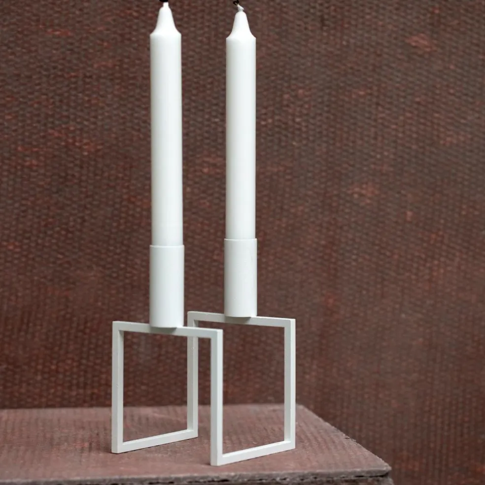 Entworfen vom dänischen Architekten Mogens Lassen im Jahr 1962 für ein Restaurant im Norden Dänemarks, hat sich das Design des Kubus Line Kerzenhalter zu einem modernen Klassiker entwickelt – heute weltweit in stilvollen Interieurs vertreten. Gefertigt aus pulverbeschichtetem oder veredeltem Stahl, überzeugt der Kerzenhalter durch seine klare, lineare Gestaltung und die handwerklich hochwertige Verarbeitung. Mit Platz für zwei Stabkerzen schafft der Line eine stimmungsvolle Atmosphäre – ob als Zentrum auf dem Esstisch, auf dem Sideboard oder als Teil eines dekorativen Arrangements. Dank seiner kompakten Maße von 10 cm Breite, 10 cm Tiefe und 16 cm Höhe passt der 600 g leichte Halter flexibel in verschiedenste Wohnsituationen. Seine zeitlose Silhouette macht den Kubus Line Kerzenhalter zu einem stilvollen Statement – zurückhaltend und dennoch präsent. Bitte lassen Sie Kerzen niemals vollständig herunterbrennen, da dies die Oberfläche beschädigen kann. Verwenden Sie idealerweise eine schützende Unterlage gegen tropfendes Wachs. Der Kerzenhalter ist nicht spülmaschinengeeignet und sollte ausschließlich von Hand gereinigt werden.
