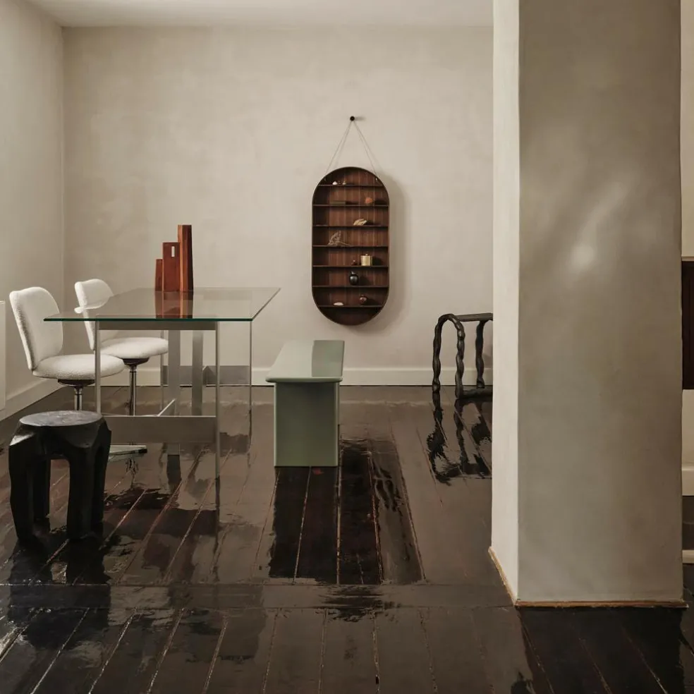 Rund um den Lager-Esstisch finden bequem sechs Personen Platz. Das Modell ist 200cm lang, 90cm breit und 76cm hoch. Sein Gewicht liegt bei 70,6kg. Passend zum Esstisch gehören zur Lager-Kollektion von Ferm Living ein Servierwagen und ein Wandregal aus Aluminium.