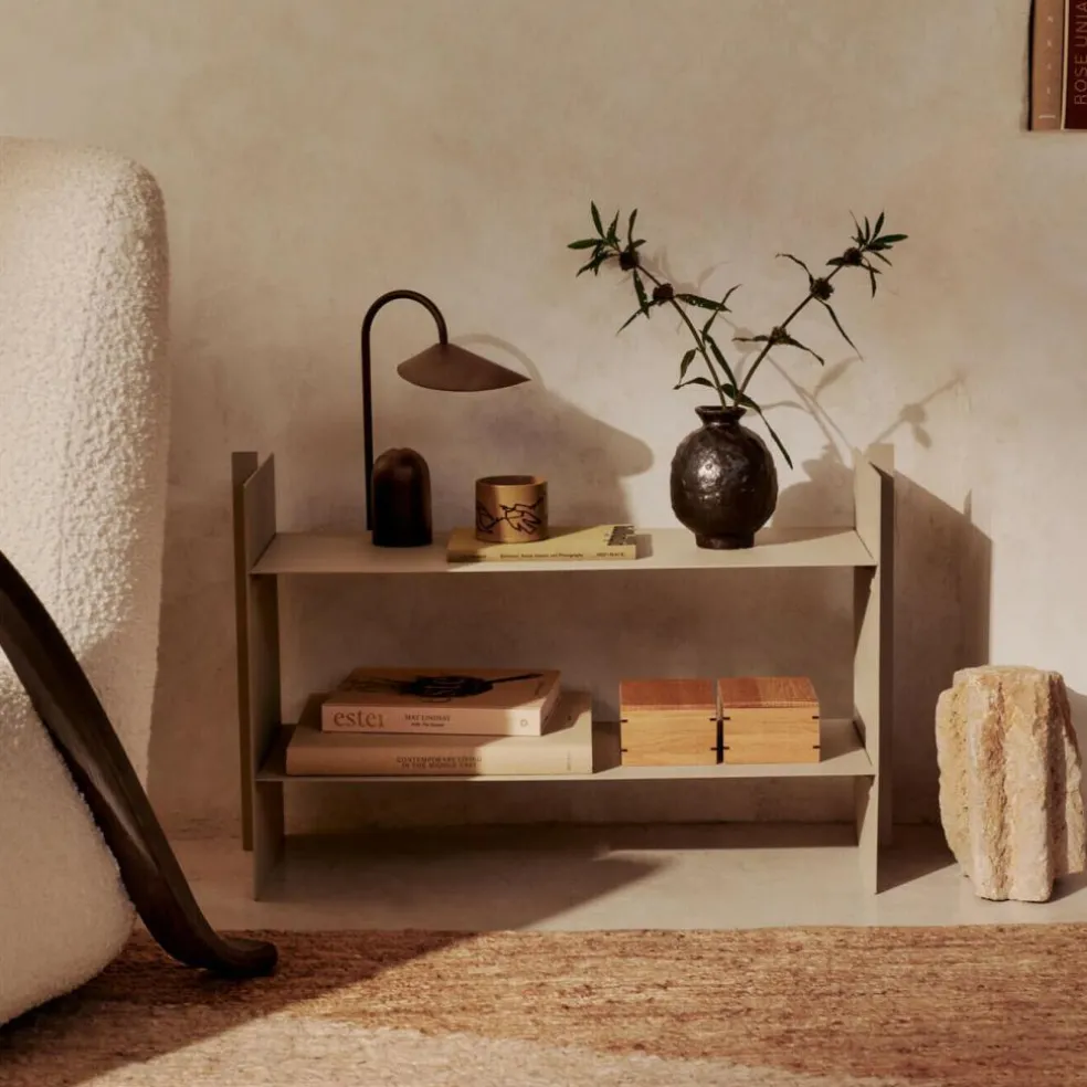 Lager Standregal niedrig. Dieses Produkt ist für die Marke Ferm Living entworfen worden.