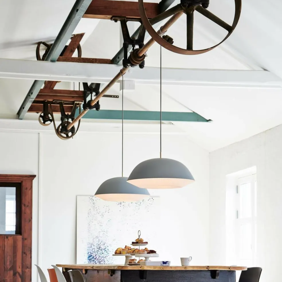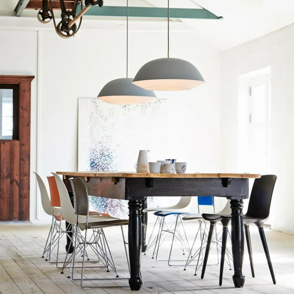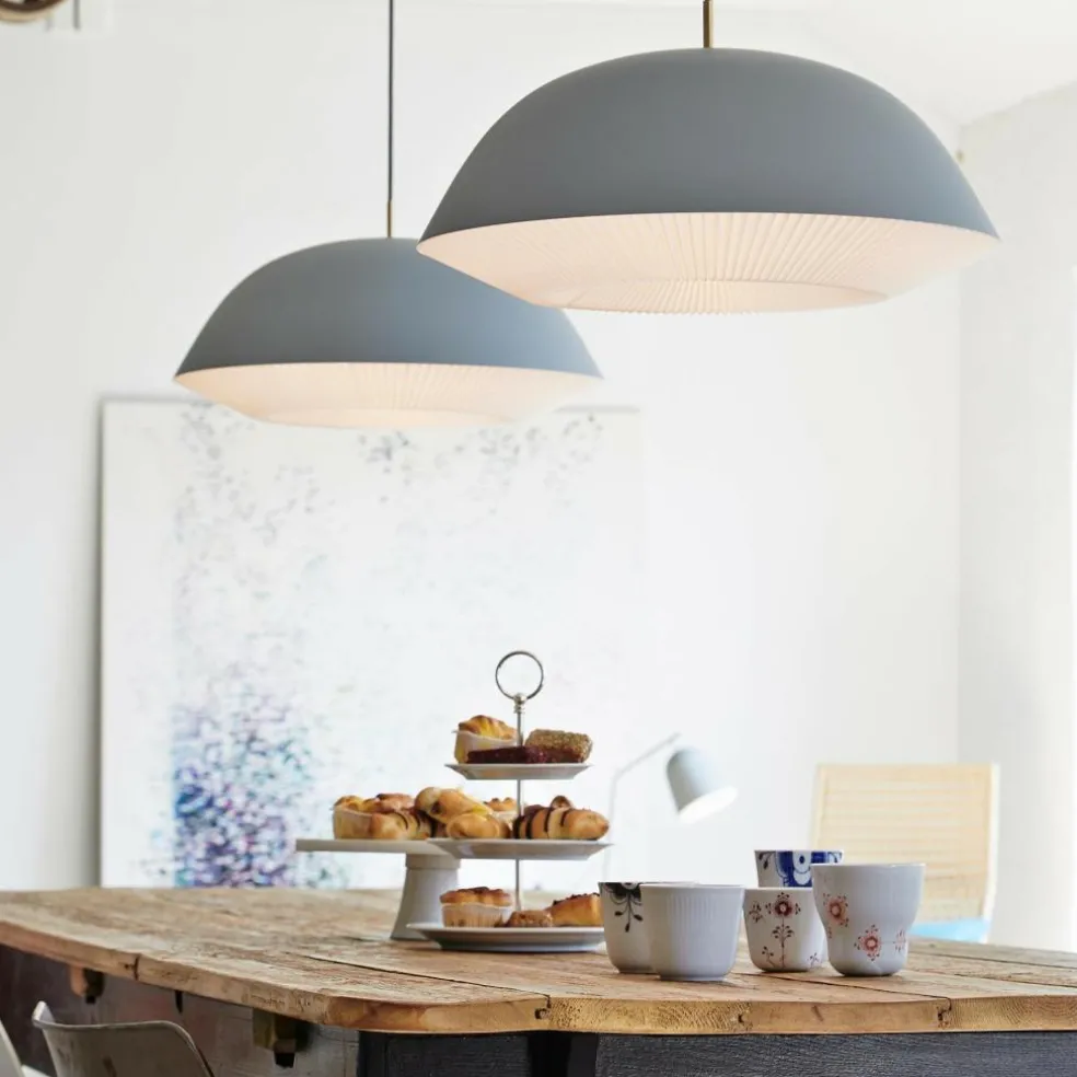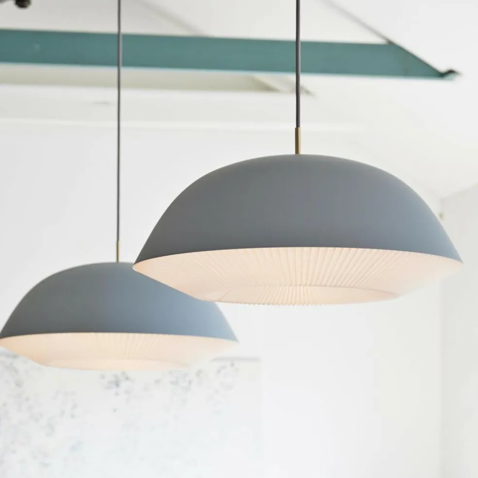 Die Oberfläche des Leuchtenschirms besteht aus Stahl. Er ist in einem Halbrund geformt, was zum harmonischen Gesamtbild beiträgt. Die Leuchte ist in verschiedenen Farben zu haben. Aus derselben Kollektion gibt es auch kleinere Pendelleuchten sowie Stehleuchten. Zum Markenzeichen wird der von Hand gefaltete innere Leuchtenschirm, der aus PVC besteht. Stilvolle Applikationen in Messing runden den Materialmix ab. Die Caché 155 Pendelleuchte XL verbreitet über dem Esstisch im Wohn- oder Esszimmer stimmungsvolle Atmosphäre. Sie wird auch gerne in Restaurants eingesetzt und kommt in Konferenzräumen zum Einsatz. Dank ihres schlichten Entwurfs passt die Caché 155 Pendelleuchte XL zu jedem Einrichtungsstil.