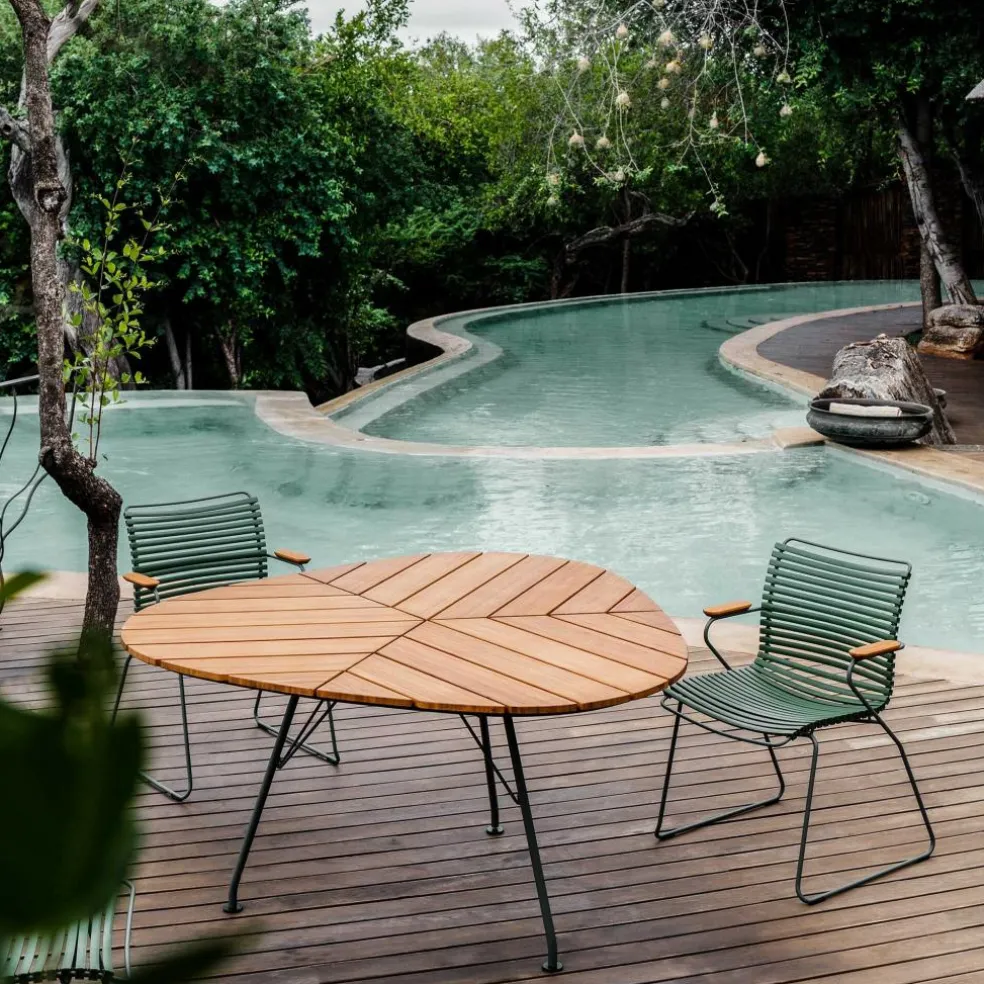 Der Leaf Gartentisch Ø 146cm von HOUE, entworfen vom dänischen Designer Henrik Pedersen, vereint organische Formensprache und funktionale Eleganz zusammen.