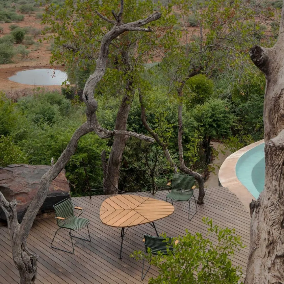Der Leaf Gartentisch Ø 146cm von HOUE verbindet skulpturales Design mit praktischer Alltagstauglichkeit – ein außergewöhnlicher Blickfang für jeden Außenbereich, der Ästhetik und Natürlichkeit in Einklang bringt.