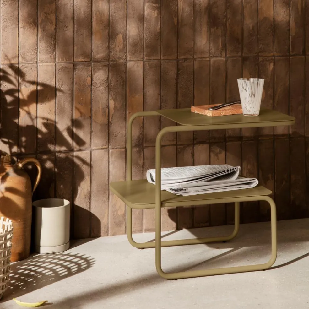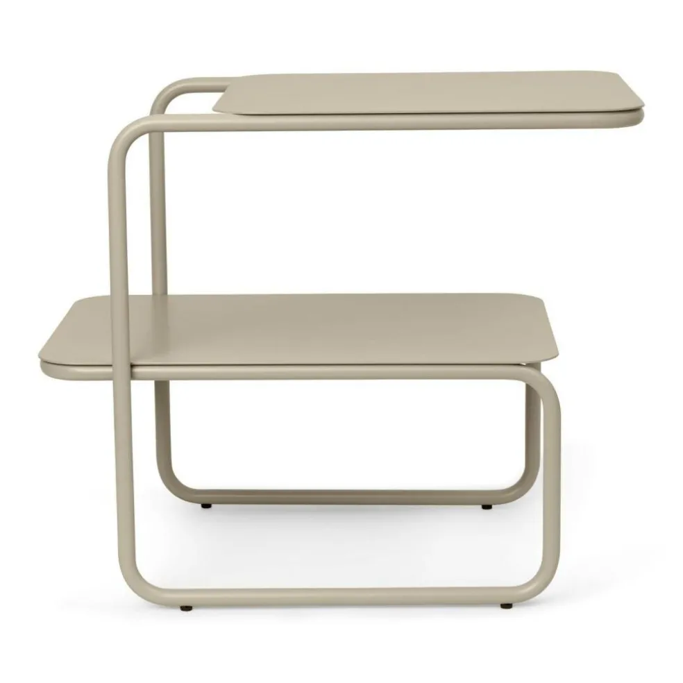 Der Level Beistelltisch erinnert ein wenig an die legendären Freischwingersessel, die ab den 1920er Jahren für Furore sorgten. Ähnlich wie bei den Sitzgelegenheiten sorgt auch beim Level Beistelltisch ein Gestell aus Rohren für festen Stand. Bei dem Material für die Rohre handelt es sich um pulverbeschichteten Stahl. Da er unempfindlich gegen Witterungseinflüsse ist, eignet sich das schlichte Möbelstück auch für den Outdoorbereich. Die Basis bilden zwei Kufen, wobei an der Unterseite Gleiter montiert sind. In ungefähr halber Höhe ist ein Ablagebrett befestigt, etwas nach vorne versetzt befindet sich die Tischplatte. Beide bestehen ebenfalls aus pulverbeschichtetem Stahl. Somit bietet der Level Beistelltisch viel Platz, um Getränke, Geschirr, Bücher und viele weitere Gegenstände abzulegen. Das schlichte Modell eignet sich jedoch nicht nur für den Balkon oder die Terrasse, sondern wird auch im Wohnzimmer oder im Büro zum praktischen Möbel.
