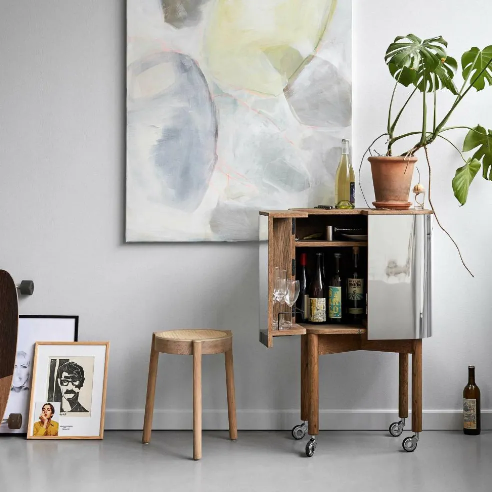 Der Loud Barwagen wurde von Frederik Färg und Emma Marga Blanche, für die Marke Northern entworfen. Wieder einmal beweisen die schwedischen Designer ihr Faible für extravagante Entwürfe. Anders als der Name vermuten ließe, drängt sich der im Jahr 2018 vorgestellte Barwagen nicht mit auffallenden Ornamenten auf. Vielmehr hält sich das Möbelstück im Hintergrund und wird zum stilvollen Accessoire für jede Hausbar oder die Gastronomie.